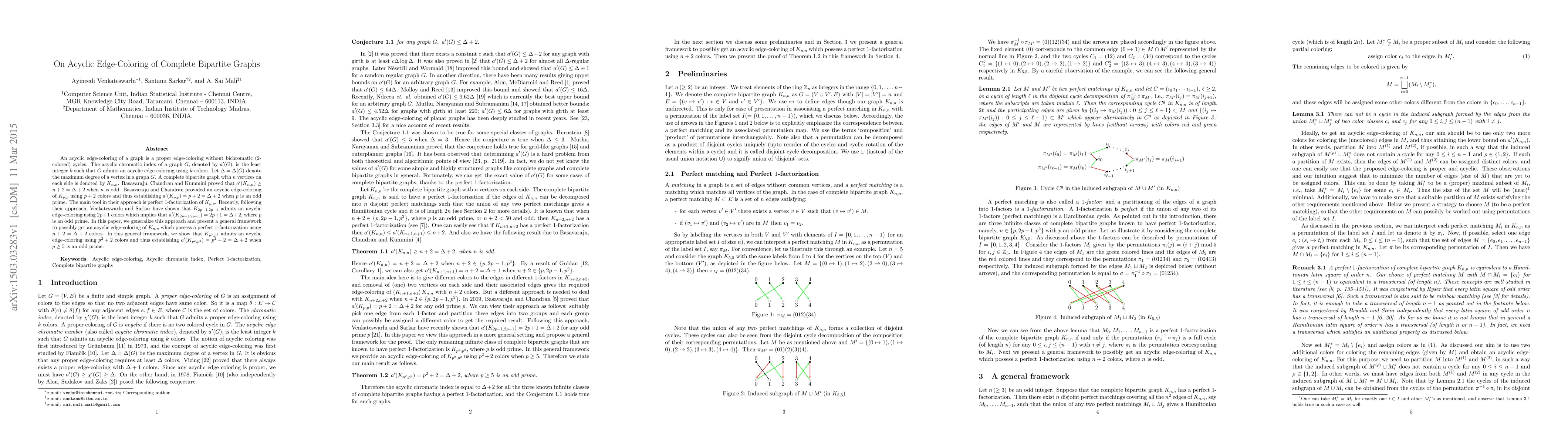 This paper generalizes acyclic edge-coloring methods for complete bipartite graphs $K_{n,n}$ that allow perfect $1$-factorization, establishing $a'(K_{p^2,p^2}) = p^2+2 = \Delta + 2$ for odd primes $p\ge 5$. It extends prior results by showing similar acyclic edge-coloring properties for $K_{2p-1,2p-1}$ and $K_{p,p}$.