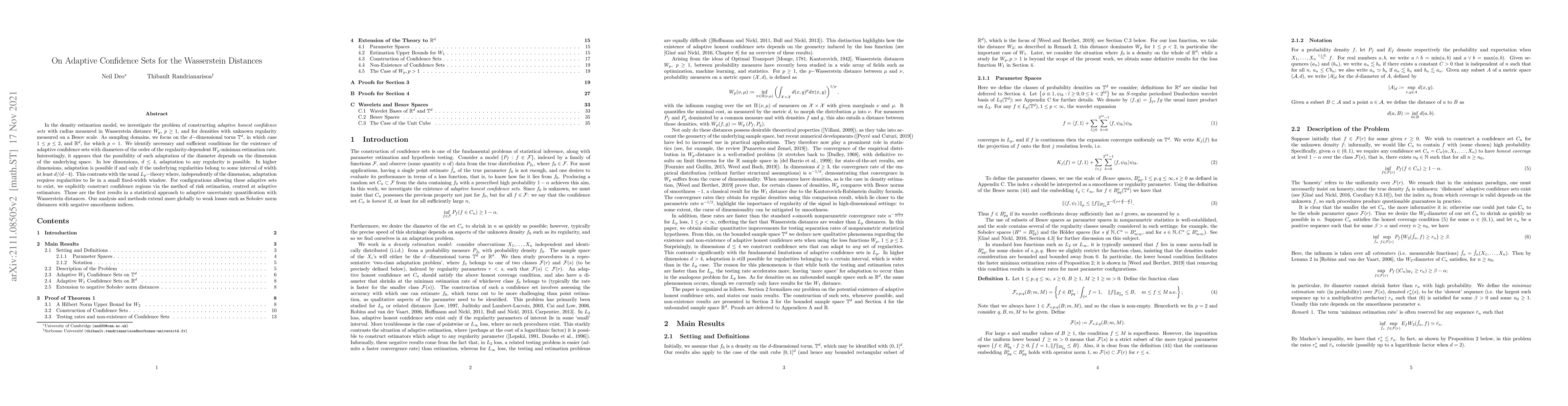 In the density estimation model, we investigate the problem of constructing adaptive honest confidence sets with radius measured in Wasserstein distance $W_p$, $p\geq1$, and for densities with unknown regularity measured on a Besov scale. As sampling domains, we focus on the $d-$dimensional torus $\mathbb{T}^d$, in which case $1\leq p\leq 2$, and $\mathbb{R}^d$, for which $p=1$. We identify necessary and sufficient conditions for the existence of adaptive confidence sets with diameters of the order of the regularity-dependent $W_p$-minimax estimation rate. Interestingly, it appears that the possibility of such adaptation of the diameter depends on the dimension of the underlying space. In low dimensions, $d\leq 4$, adaptation to any regularity is possible. In higher dimensions, adaptation is possible if and only if the underlying regularities belong to some interval of width at least $d/(d-4)$. This contrasts with the usual $L_p-$theory where, independently of the dimension, adaptation requires regularities to lie in a small fixed-width window. For configurations allowing these adaptive sets to exist, we explicitly construct confidence regions via the method of risk estimation, centred at adaptive estimators. Those are the first results in a statistical approach to adaptive uncertainty quantification with Wasserstein distances. Our analysis and methods extend more globally to weak losses such as Sobolev norm distances with negative smoothness indices.
