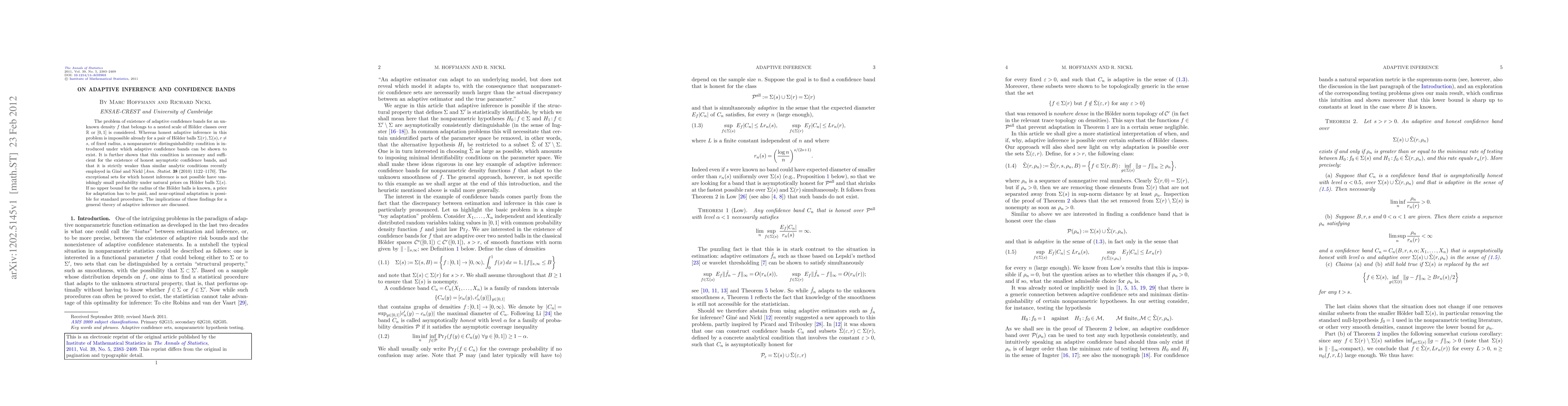 This paper explores the existence of adaptive confidence bands for unknown densities within nested Hölder classes. It introduces a nonparametric distinguishability condition under which adaptive confidence bands can exist, proving its necessity and sufficiency for honest asymptotic confidence bands. The study also discusses the implications of these findings for the broader theory of adaptive inference.