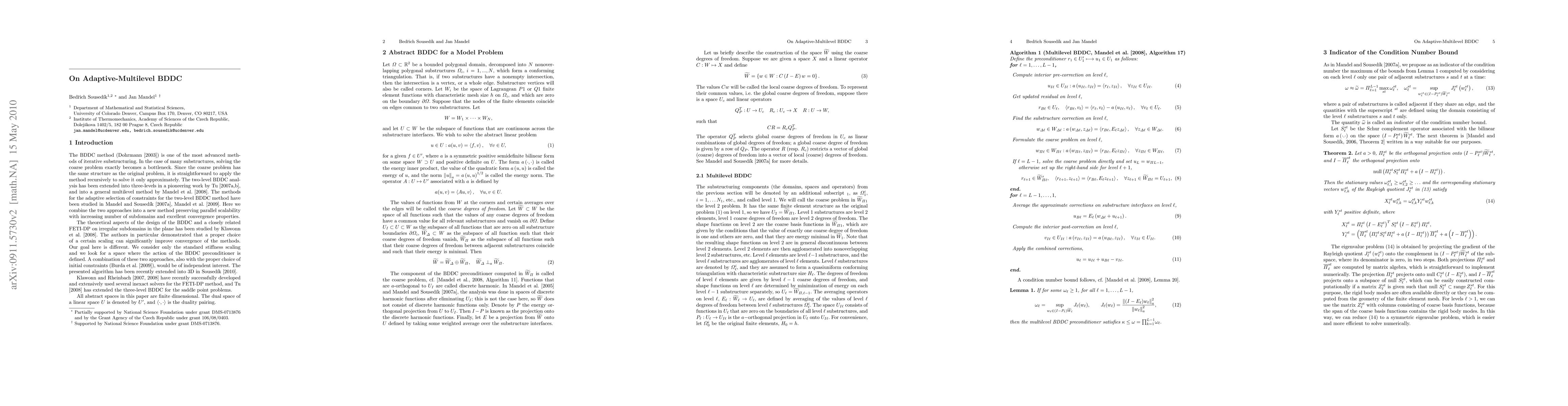 The development of an adaptive multilevel BDDC method that can efficiently solve partial differential equations on a range of meshes, including those with complex geometries.