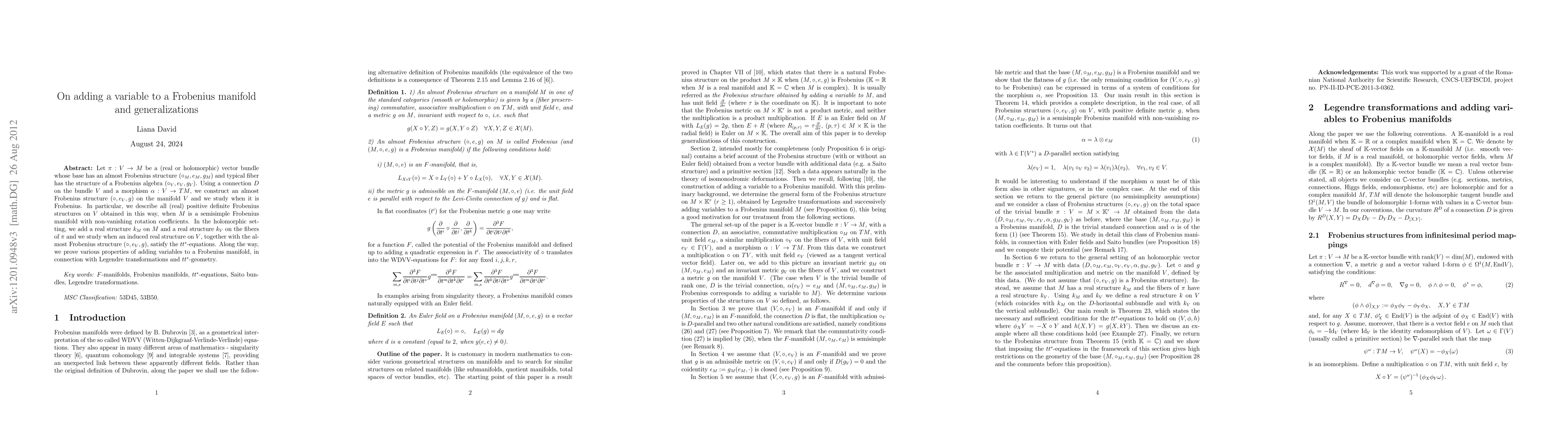 Let \pi : V \rightarrow M be a (real or holomorphic) vector bundle whose base has an almost Frobenius structure (\circ_{M},e_{M}, g_{M}) and typical fiber has the structure of a Frobenius algebra (\circ_{V},e_{V},g_{V}). Using a connection D on the bundle V and a morphism \alpha : V \rightarrow TM, we construct an almost Frobenius structure (\circ,e_{V},g) on the manifold V and we study when it is Frobenius. We describe all (real) positive-definite Frobenius structures on V, obtained in this way, when M is a semisimple Frobenius manifold with non-vanishing rotation coefficients. In the holomorphic setting we add a real structure k_{M} on M and a real structure k_{V} on the fibers of \pi and we study when an induced real structure on the manifold V, together with the almost Frobenius structure (\circ, e_{V}, g), satisfy the tt*-equations. Along the way, we prove various properties of adding variables to a Frobenius manifold, in connection with Legendre transformations and tt*-geometry.