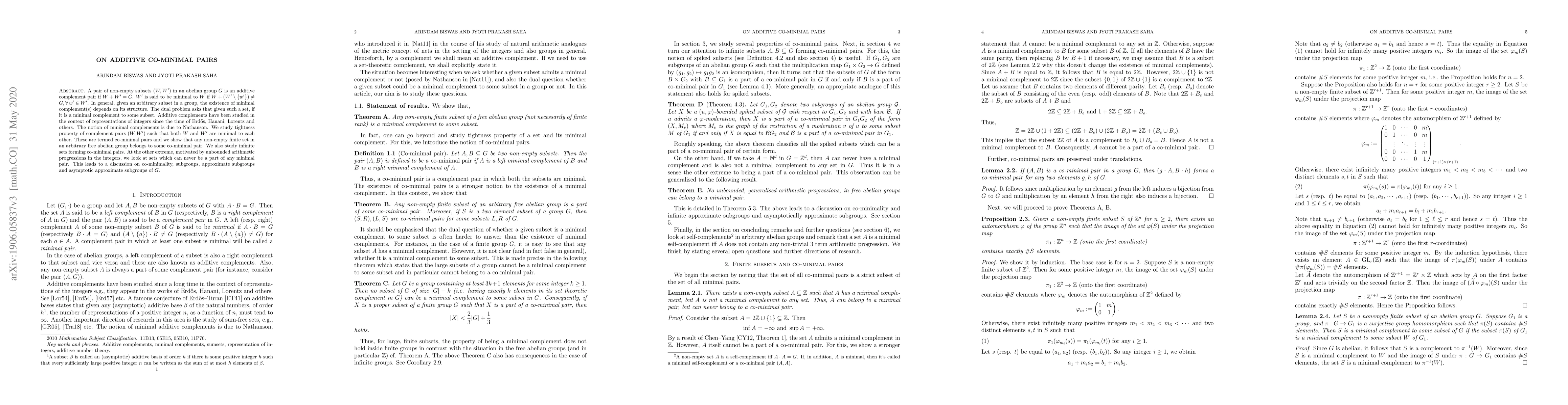 A pair of non-empty subsets $(W,W')$ in an abelian group $G$ is an additive complement pair if $W+W'=G$. $W'$ is said to be minimal to $W$ if $W+(W'\setminus \{w'\}) \neq G, \forall \,w'\in W'$. In general, given an arbitrary subset in a group, the existence of minimal complement(s) depends on its structure. The dual problem asks that given such a set, if it is a minimal complement to some subset. Additive complements have been studied in the context of representations of integers since the time of Erd\H{o}s, Hanani, Lorentz and others. The notion of minimal complements is due to Nathanson. We study tightness property of complement pairs $(W,W')$ such that both $W$ and $W'$ are minimal to each other. These are termed co-minimal pairs and we show that any non-empty finite set in an arbitrary free abelian group belongs to some co-minimal pair. We also study infinite sets forming co-minimal pairs. At the other extreme, motivated by unbounded arithmetic progressions in the integers, we look at sets which can never be a part of any minimal pair. This leads to a discussion on co-minimality, subgroups, approximate subgroups and asymptotic approximate subgroups of $G$.