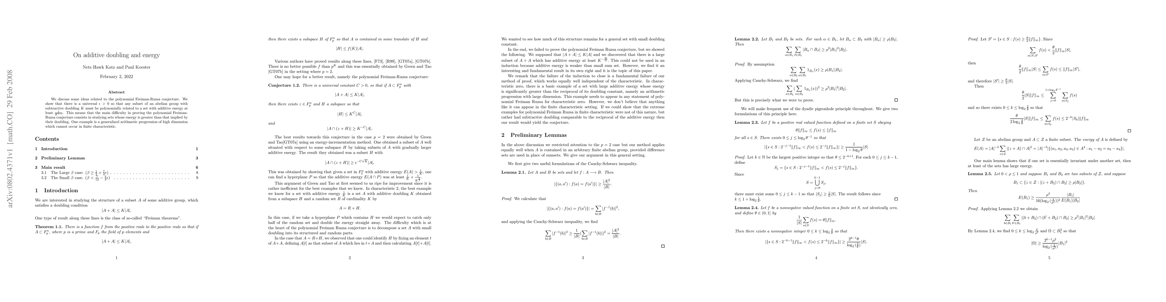 Researchers found that in an abelian group, if a set has small subtractive doubling, there exists a large subset with high additive energy, growing polynomially with the size of the original set.