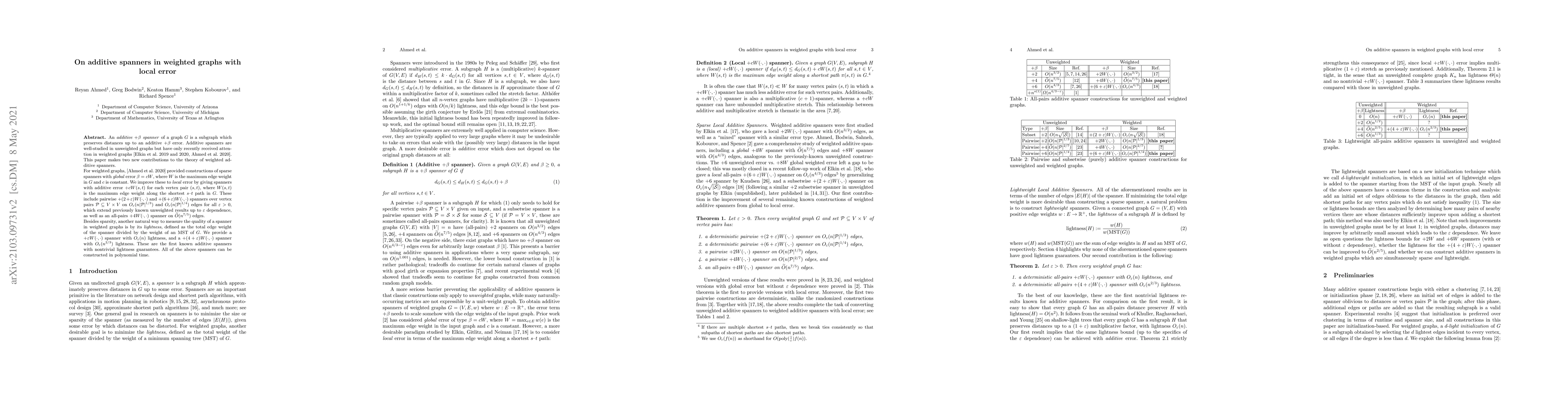 The paper introduces a new method for constructing additive spanners in weighted graphs with local error, improving upon previous global error constructions.