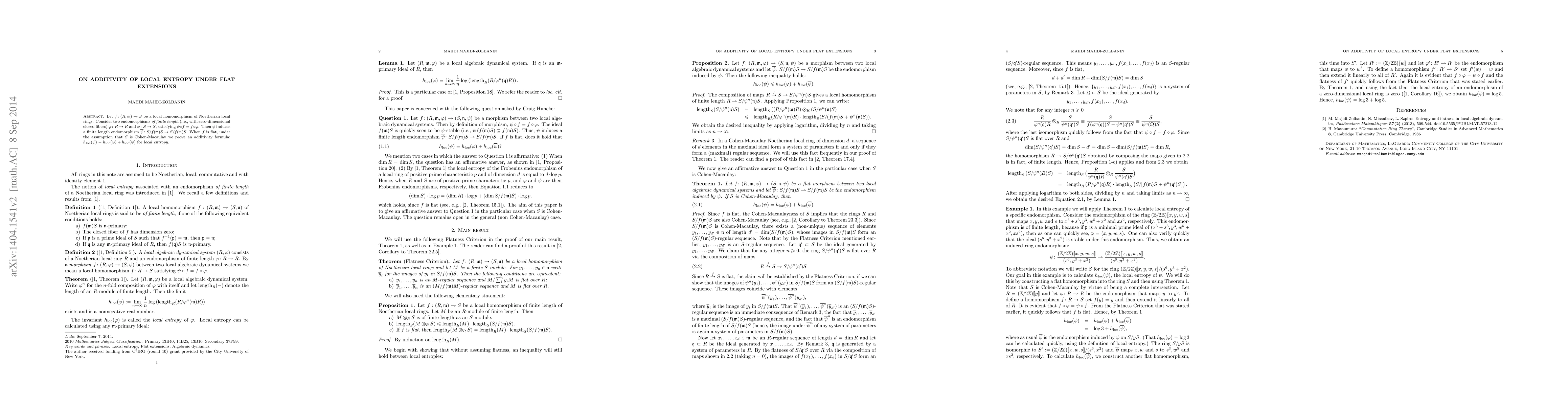This research paper proves an additivity formula for local entropy under flat extensions of Noetherian local rings, showing that the local entropy of a composite map is equal to the sum of the local entropies of its component maps.