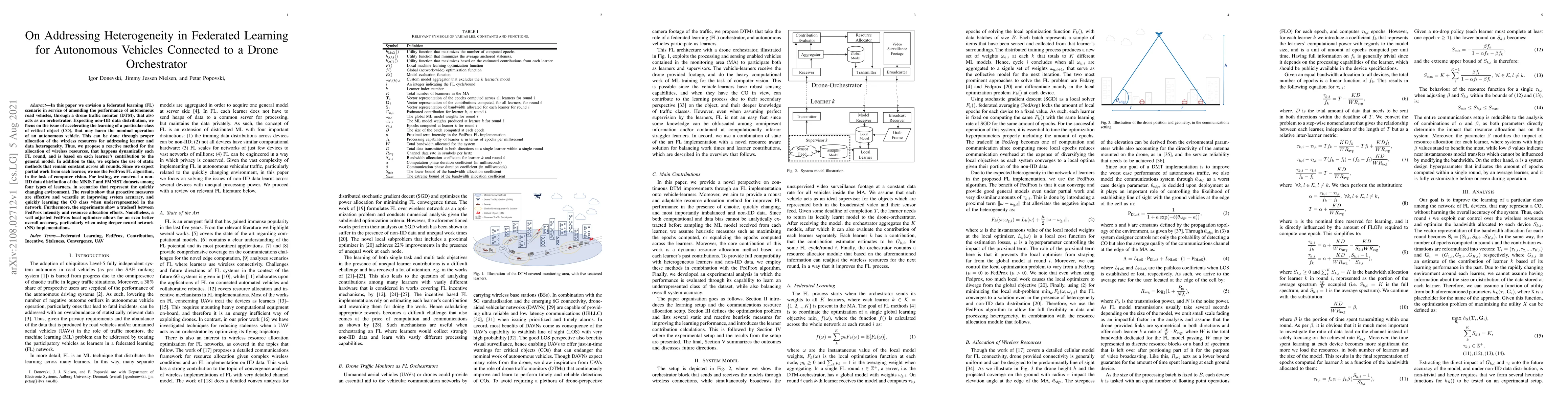 In this paper we envision a federated learning (FL) scenario in service of amending the performance of autonomous road vehicles, through a drone traffic monitor (DTM), that also acts as an orchestrator. Expecting non-IID data distribution, we focus on the issue of accelerating the learning of a particular class of critical object (CO), that may harm the nominal operation of an autonomous vehicle. This can be done through proper allocation of the wireless resources for addressing learner and data heterogeneity. Thus, we propose a reactive method for the allocation of wireless resources, that happens dynamically each FL round, and is based on each learner's contribution to the general model. In addition to this, we explore the use of static methods that remain constant across all rounds. Since we expect partial work from each learner, we use the FedProx FL algorithm, in the task of computer vision. For testing, we construct a non-IID data distribution of the MNIST and FMNIST datasets among four types of learners, in scenarios that represent the quickly changing environment. The results show that proactive measures are effective and versatile at improving system accuracy, and quickly learning the CO class when underrepresented in the network. Furthermore, the experiments show a tradeoff between FedProx intensity and resource allocation efforts. Nonetheless, a well adjusted FedProx local optimizer allows for an even better overall accuracy, particularly when using deeper neural network (NN) implementations.