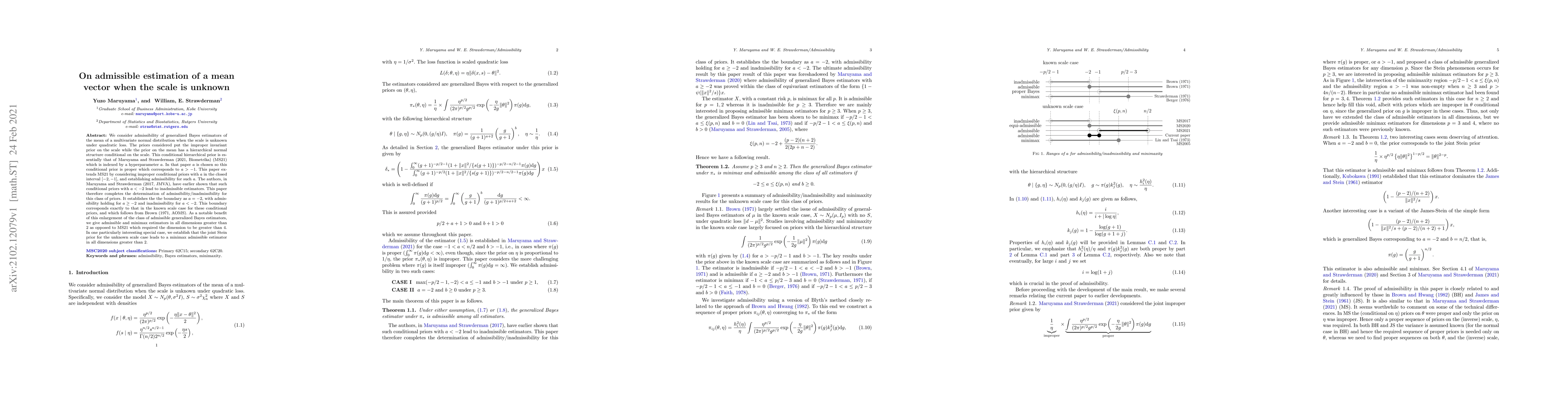 We consider admissibility of generalized Bayes estimators of the mean of a multivariate normal distribution when the scale is unknown under quadratic loss. The priors considered put the improper invariant prior on the scale while the prior on the mean has a hierarchical normal structure conditional on the scale. This conditional hierarchical prior is essentially that of Maruyama and Strawderman (2021, Biometrika) (MS21) which is indexed by a hyperparameter $a$. In that paper $a$ is chosen so this conditional prior is proper which corresponds to $a>-1$. This paper extends MS21 by considering improper conditional priors with $a$ in the closed interval $[-2, -1]$, and establishing admissibility for such $a$. The authors, in Maruyama and Strawderman (2017, JMVA), have earlier shown that such conditional priors with $a < -2$ lead to inadmissible estimators. This paper therefore completes the determination of admissibility/inadmissibility for this class of priors. It establishes the the boundary as $a = -2$, with admissibility holding for $a\geq -2$ and inadmissibility for $a < -2$. This boundary corresponds exactly to that in the known scale case for these conditional priors, and which follows from Brown (1971, AOMS). As a notable benefit of this enlargement of the class of admissible generalized Bayes estimators, we give admissible and minimax estimators in all dimensions greater than $2$ as opposed to MS21 which required the dimension to be greater than $4$. In one particularly interesting special case, we establish that the joint Stein prior for the unknown scale case leads to a minimax admissible estimator in all dimensions greater than $2$.