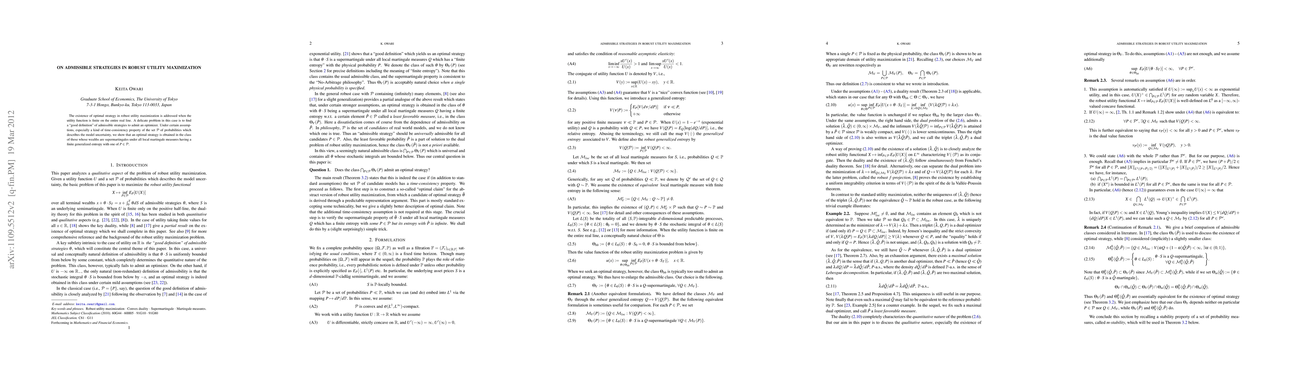The existence of optimal strategy in robust utility maximization is addressed when the utility function is finite on the entire real line. A delicate problem in this case is to find a "good definition" of admissible strategies, so that an optimizer is obtained. Under suitable assumptions, especially a time-consistency property of the set of probabilities which describes the model uncertainty, we show that an optimal strategy is obtained in the class of strategies whose wealths are supermartingales under all local martingale measures having a finite generalized entropy with at least one of candidate models (probabilities).