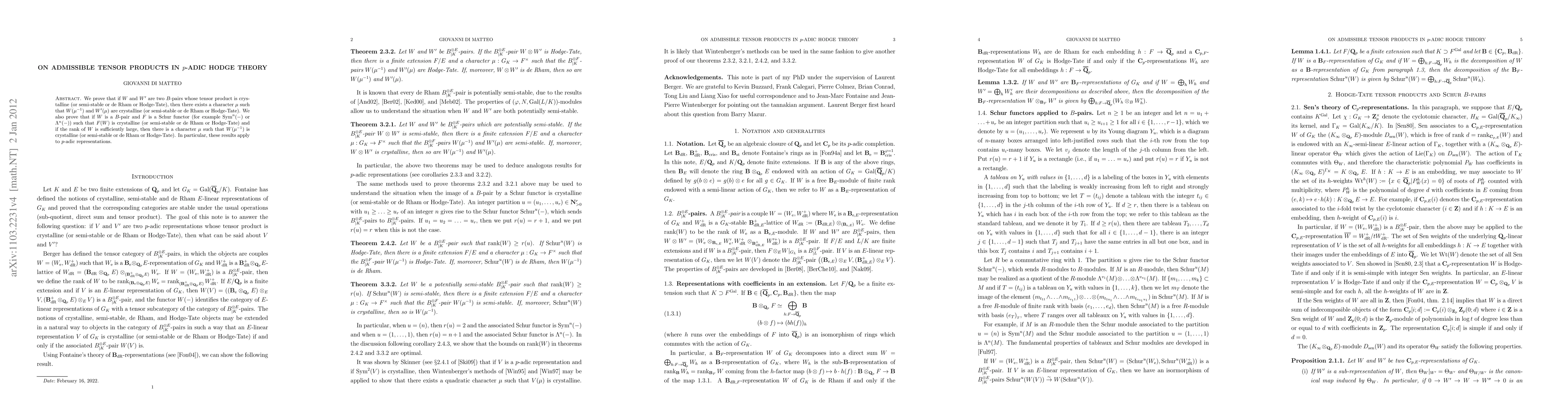 We prove that if $W$ and $W'$ are two $B$-pairs whose tensor product is crystalline (or semi-stable or de Rham or Hodge-Tate), then there exists a character $\mu$ such that $W(\mu^{-1})$ and $W'(\mu)$ are crystalline (or semi-stable or de Rham or Hodge-Tate). We also prove that if $W$ is a $B$-pair and $F$ is a Schur functor (for example $\Sym^n(-)$ or $\Lambda^n(-)$) such that $F(W)$ is crystalline (or semi-stable or de Rham or Hodge-Tate) and if the rank of $W$ is sufficiently large, then there is a character $\mu$ such that $W(\mu^{-1})$ is crystalline (or semi-stable or de Rham or Hodge-Tate). In particular, these results apply to $p$-adic representations.