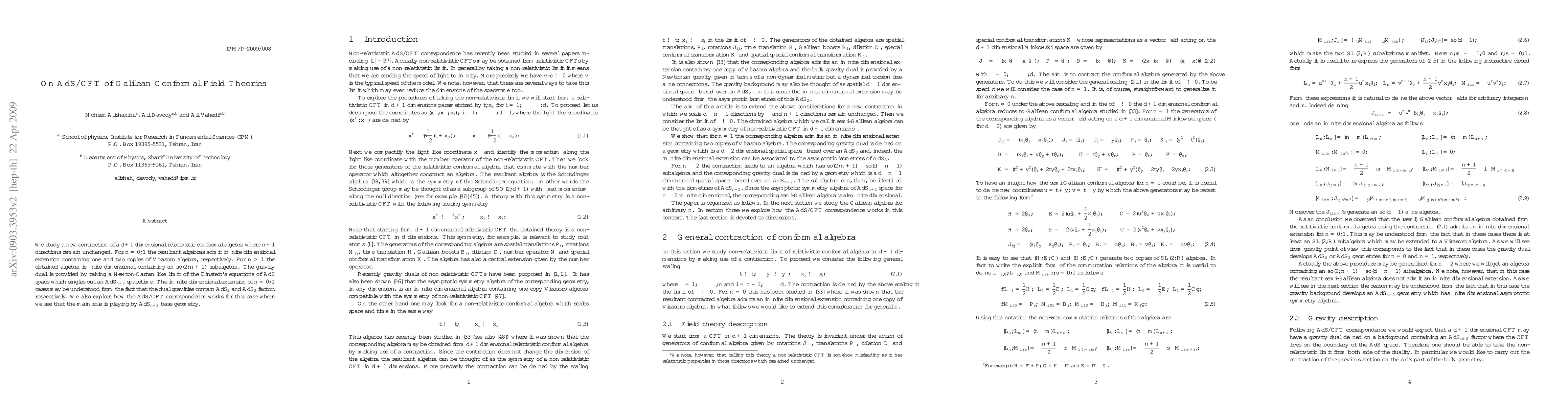 This paper investigates a new contraction of a relativistic conformal algebra leading to Galilean conformal field theories, revealing infinite-dimensional extensions for n=0,1 and finite-dimensional cases for n>1. The gravity dual is derived through a Newton-Cartan limit of AdS space, highlighting AdS_{n+2} spacetimes.