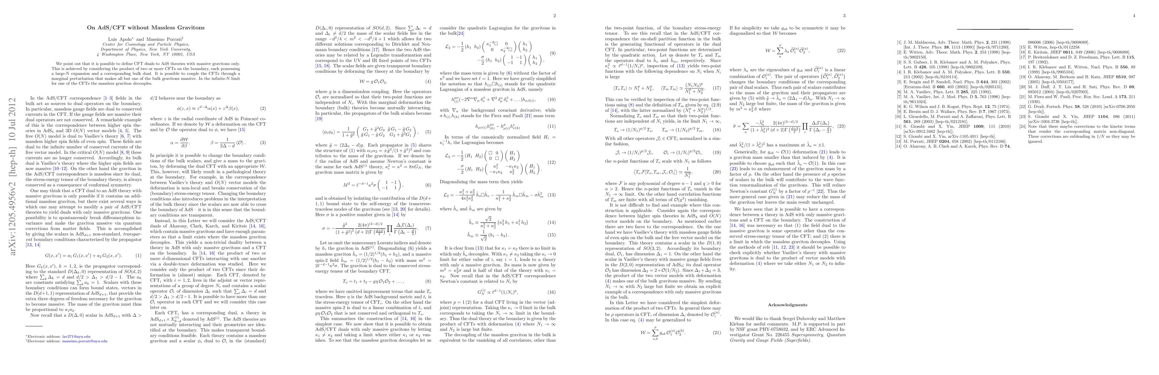 We point out that it is possible to define CFT duals to AdS theories with massive gravitons only. This is achieved by considering the product of two or more CFTs on the boundary, each possessing a large-N expansion and a corresponding bulk dual. It is possible to couple the CFTs through a marginal perturbation that makes all but one of the bulk gravitons massive. In the infinite-N limit for one of the CFTs the massless graviton decouples.