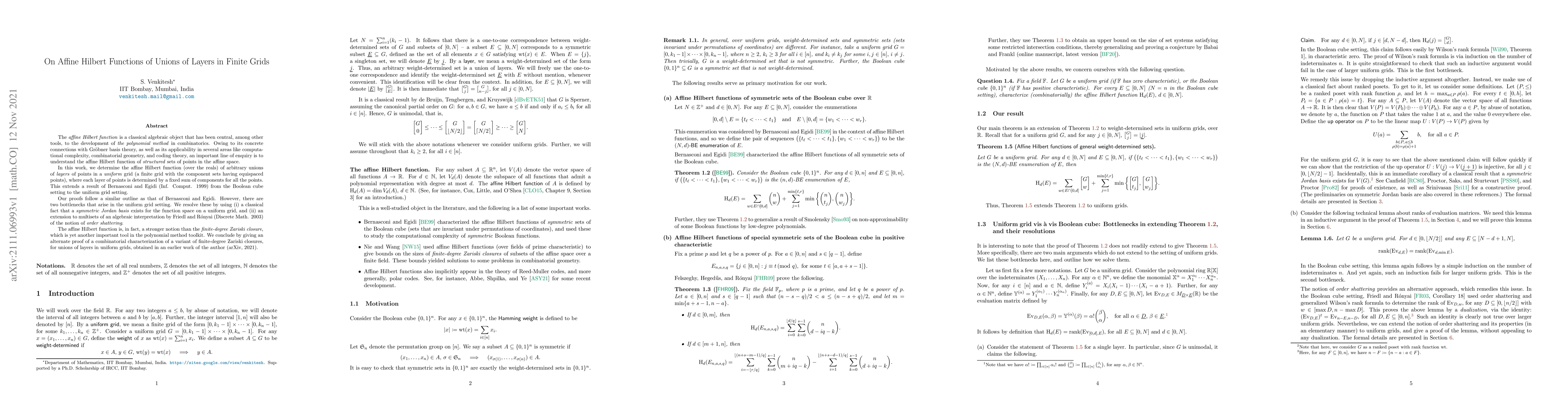 Researchers determine the affine Hilbert function of unions of layers in a uniform grid, extending previous results from a Boolean cube setting. They use classical facts and algebraic interpretations to resolve bottlenecks and provide an alternative proof of a combinatorial characterization.