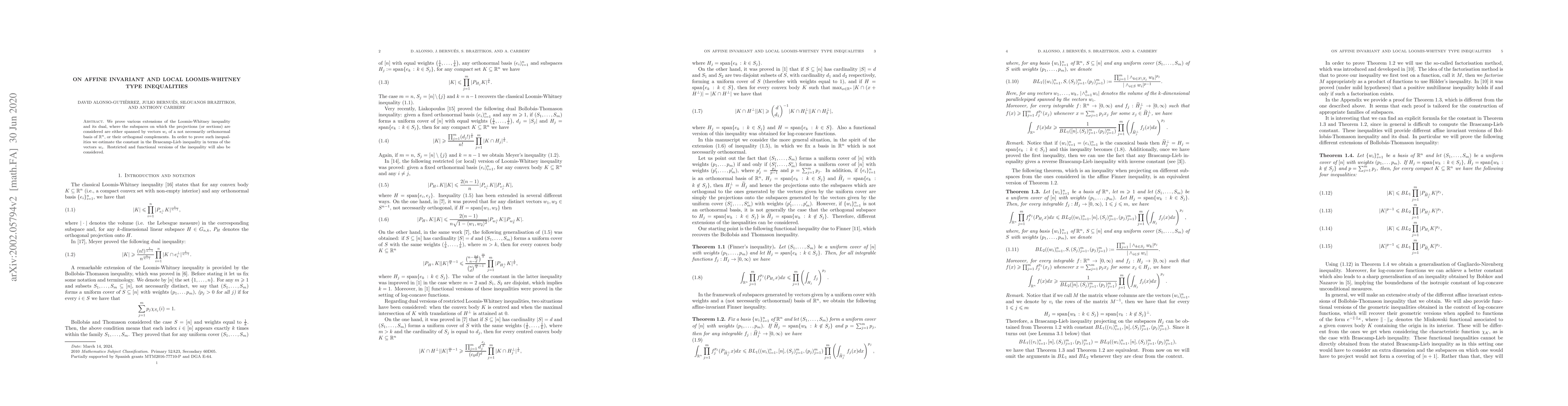 Researchers prove extensions of the Loomis-Whitney inequality, considering subspaces spanned by vectors in a basis or their orthogonal complements, with implications for restricted and functional inequalities.