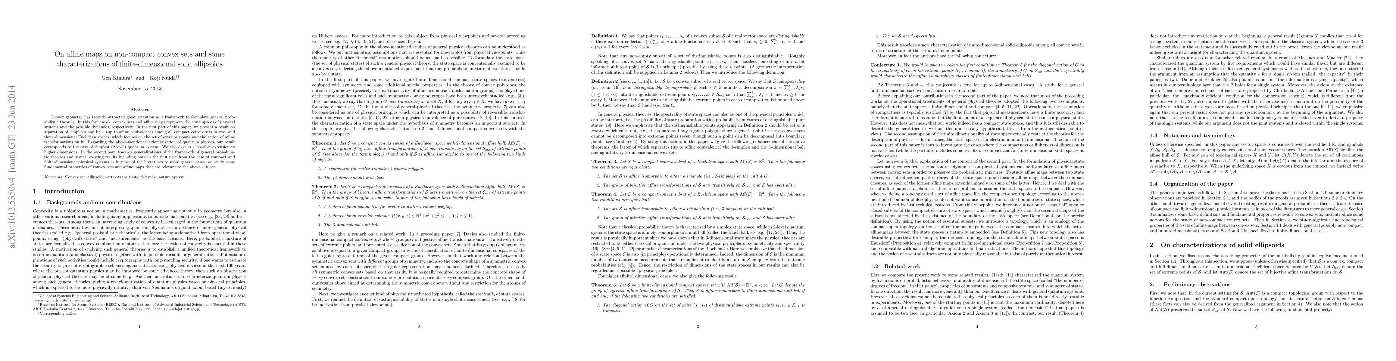 This paper explores affine maps on non-compact convex sets and characterizes finite-dimensional solid ellipsoids within the framework of convex geometry. It presents results on the separation of simplices and balls among compact convex sets, extending insights to higher dimensions and discussing implications for general probabilistic theories.