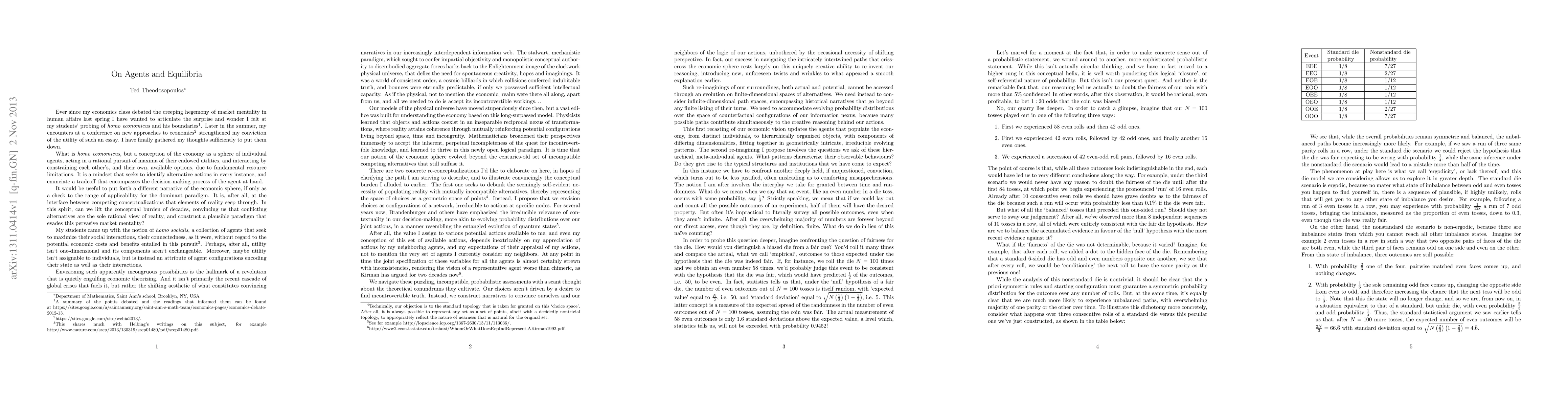 This essay discusses the advantages of a probabilistic agent-based approach to questions in theoretical economics, from the nature of economic agents, to the nature of the equilibria supported by their interactions. One idea we propose is that "agents" are meta-individual, hierarchically structured objects, that include as irreducible components groupings of different dimensions. We also explore the effects of non-ergodicity, by constructing a simple stochastic model for the contingent nature of economic interactions.