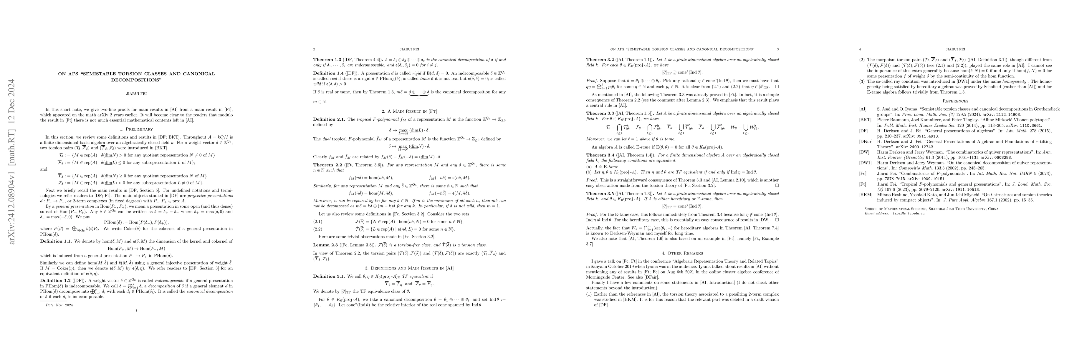 Summary: This paper provides concise two-line proofs for the main results in Asai-Iyama's work on semistable torsion classes and canonical decompositions, leveraging a foundational result from a related tropical geometry paper published on arXiv two years prior.