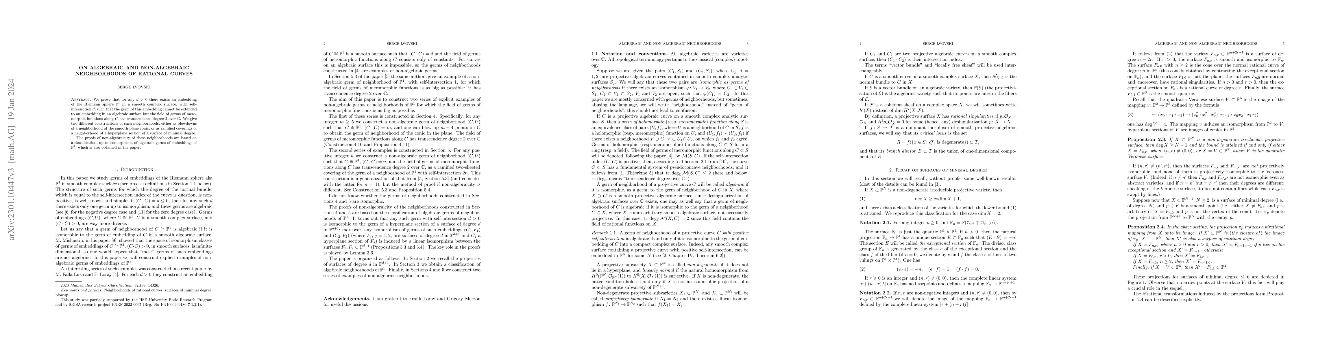 We prove that for any $d>0$ there exists an embedding of the Riemann sphere $\mathbb P^1$ in a smooth complex surface, with self-intersection $d$, such that the germ of this embedding cannot be extended to an embedding in an algebraic surface but the field of germs of meromorphic functions along $C$ has transcendence degree $2$ over $\mathbb C$. We give two different constructions of such neighborhoods, either as blowdowns of a neighborhood of the smooth plane conic, or as ramified coverings of a neighborhood of a hyperplane section of a surface of minimal degree. The proofs of non-algebraicity of these neighborhoods are based on a classification, up to isomorphism, of algebraic germs of embeddings of $\mathbb P^1$, which is also obtained in the paper.