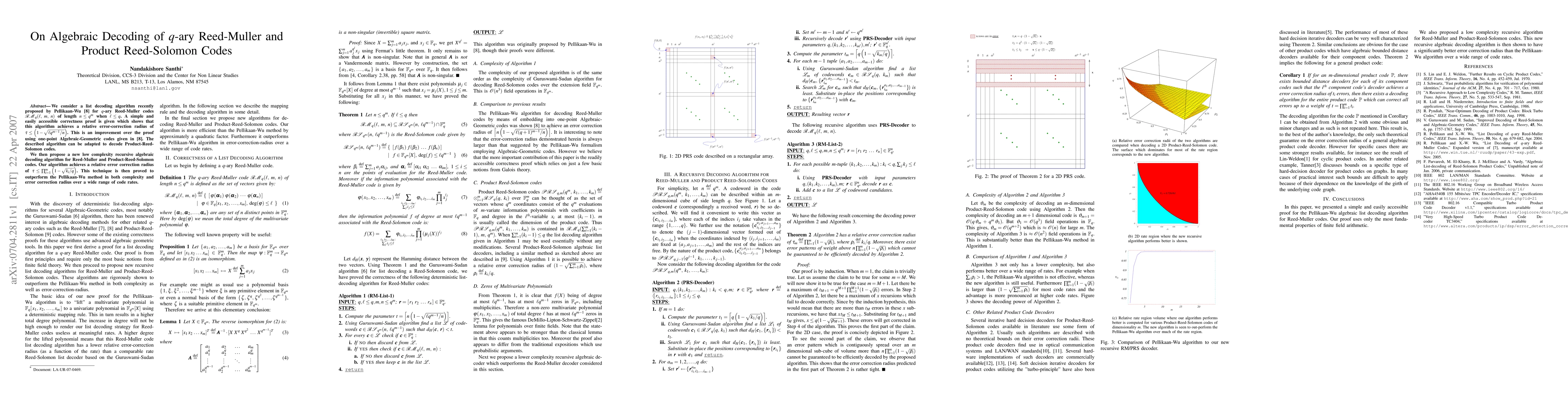 This paper presents a new list decoding algorithm for $q$-ary Reed-Muller and Product-Reed-Solomon codes, improving the error-correction radius and complexity compared to existing methods. The proposed algorithm achieves a relative error-correction radius of $\tau \leq \prod_{i=1}^m (1 - \sqrt{k_i/q})$, outperforming the Pellikaan-Wu method.