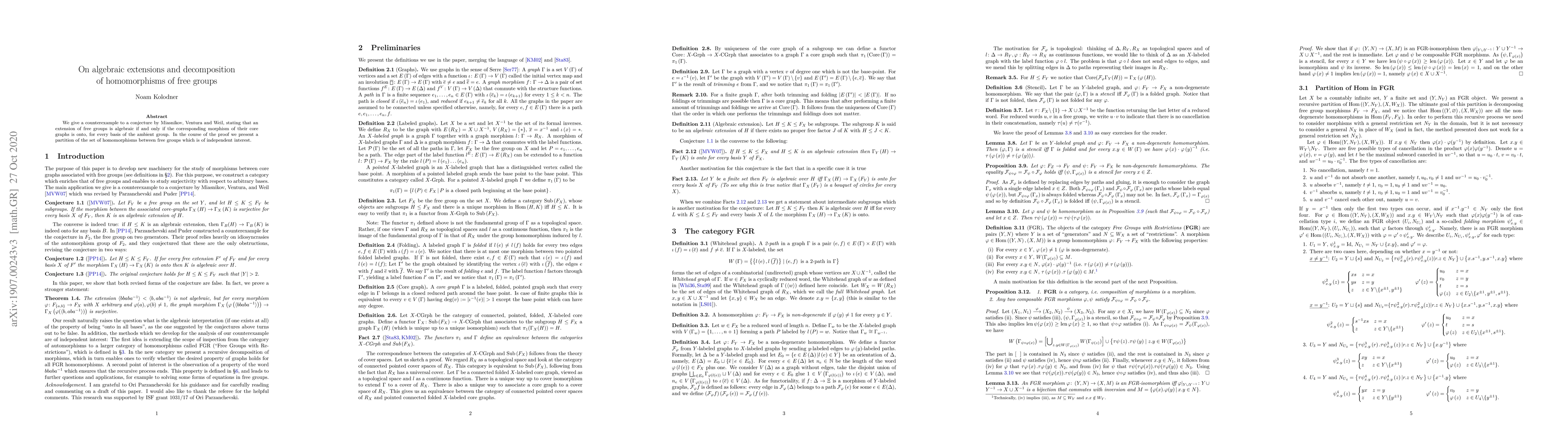 We give a counterexample to a conjecture by Miasnikov, Ventura and Weil, stating that an extension of free groups is algebraic if and only if the corresponding morphism of their core graphs is onto, for every basis of the ambient group. In the course of the proof we present a partition of the set of homomorphisms between free groups which is of independent interest.