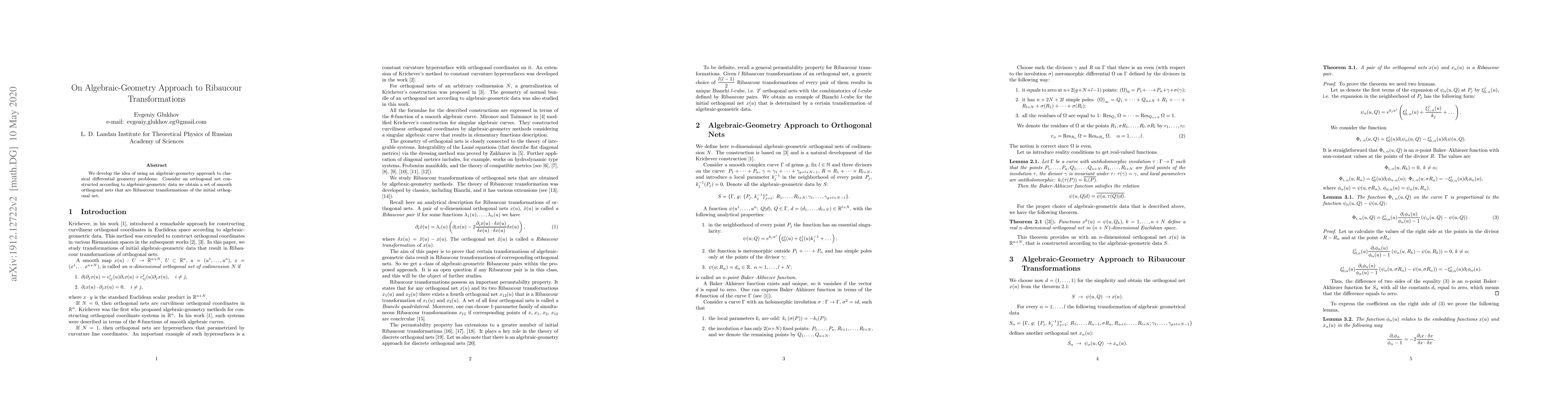 We develop the idea of using an algebraic-geometry approach to classical differential geometry problems. Consider an orthogonal net constructed according to algebraic-geometric data we obtain a set of smooth orthogonal nets that are Ribaucour transformations of the initial orthogonal net.