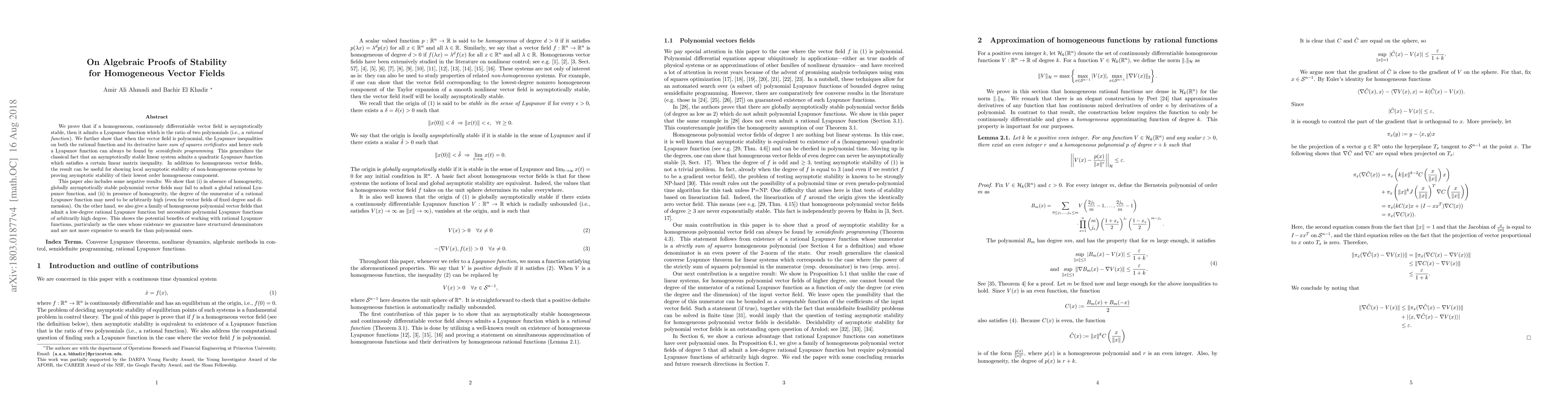 This paper proves the existence of rational Lyapunov functions for asymptotically stable homogeneous vector fields, showing that such functions can be found via semidefinite programming when the vector field is polynomial. It also discusses limitations, including the absence of global rational Lyapunov functions for non-homogeneous systems and the potential need for high-degree rational functions for certain homogeneous systems.
