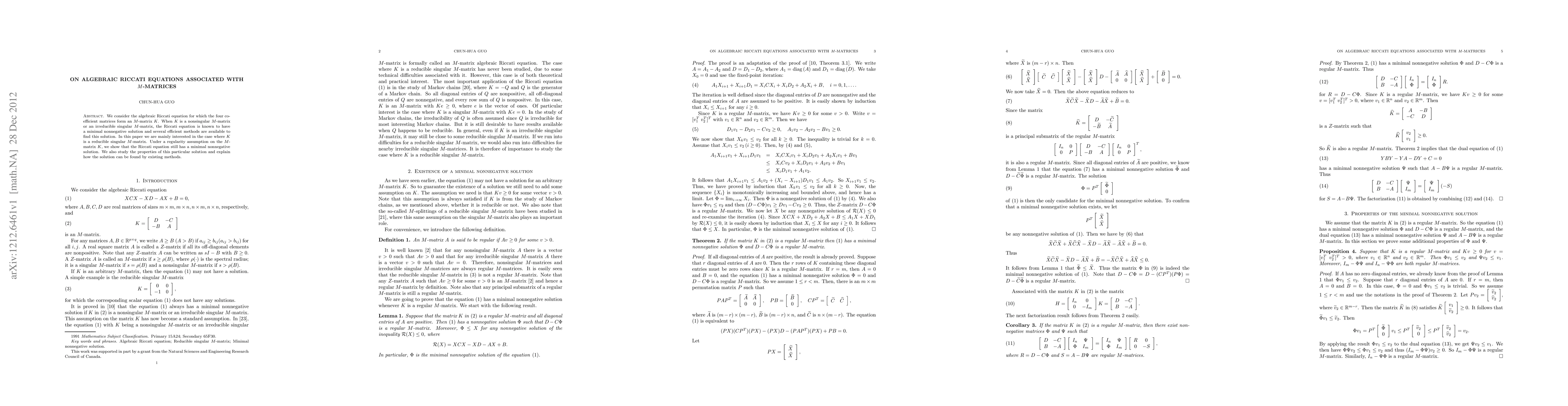 This paper investigates the algebraic Riccati equation with coefficient matrices forming a reducible singular M-matrix. It demonstrates the existence of a minimal nonnegative solution under a regularity assumption and discusses its properties and computational methods for finding this solution.