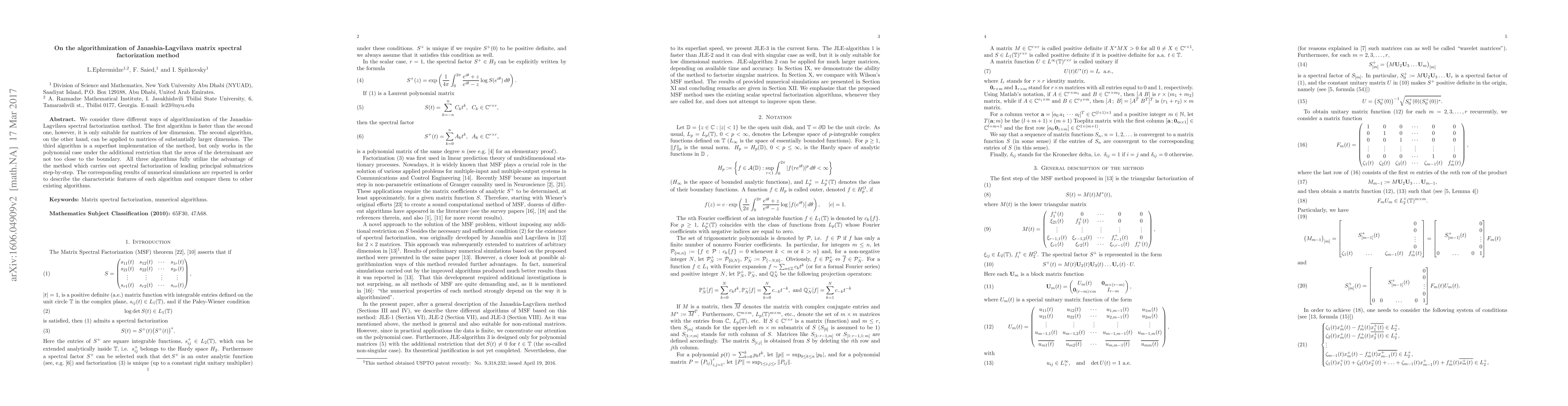 Researchers developed three algorithms for faster spectral factorization of Janashia-Lagvilava matrices, with varying levels of applicability and computational efficiency.