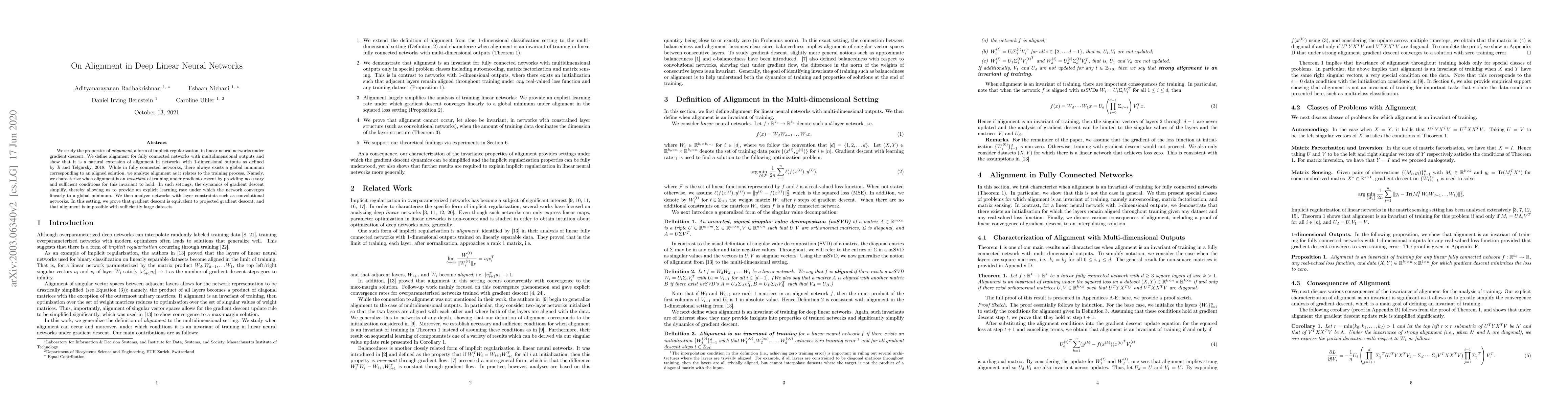 A research paper explores alignment in deep linear neural networks under gradient descent, finding that it simplifies convergence to a global minimum when certain conditions are met, but is impossible with sufficiently large datasets.