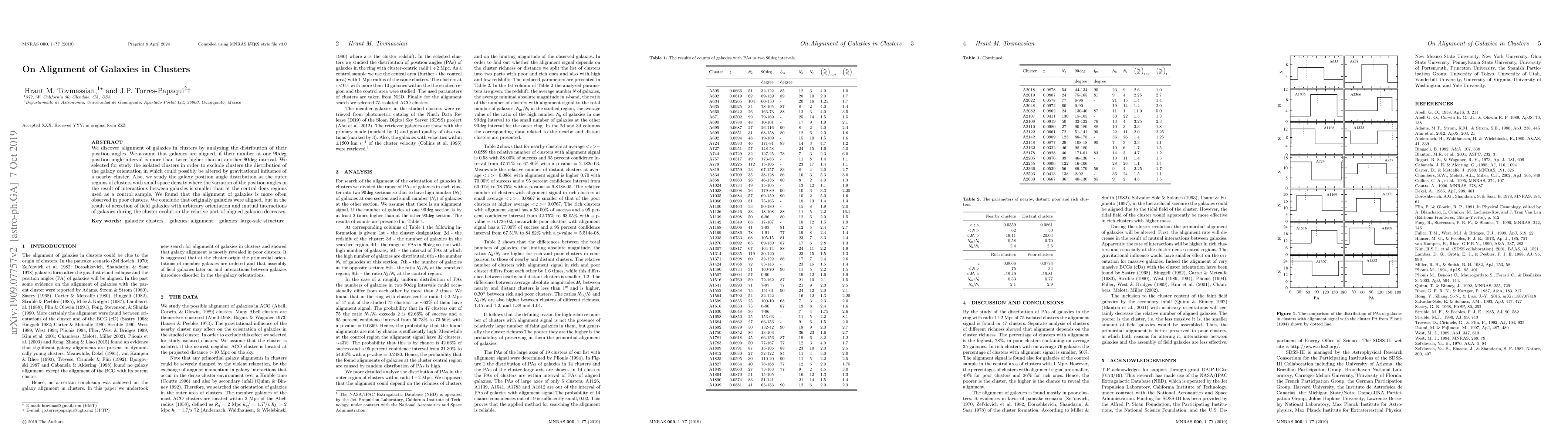This study reveals that galaxies in isolated clusters often exhibit alignment, particularly in poor clusters, suggesting an initial alignment that diminishes over time due to accretion and interactions. The analysis focuses on position angles, finding alignment more frequent in outer regions with lower space density.