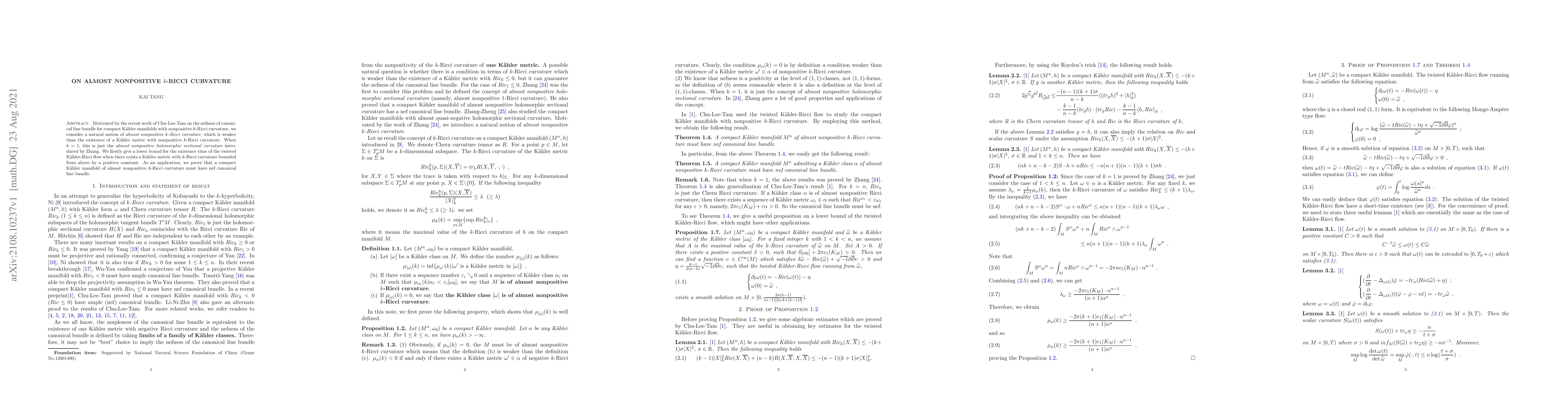 This work extends Zhang's results on almost nonpositive holomorphic sectional curvature to the case of $k > 1$, introducing the concept of almost nonpositive $k$-Ricci curvature and providing significant new insights into its properties and applications.