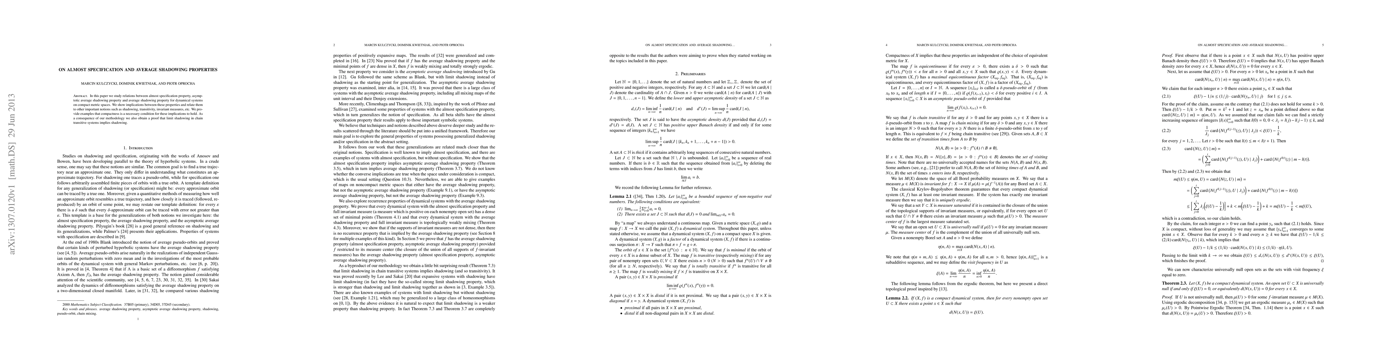 This paper investigates the connections between almost specification, asymptotic average shadowing, and average shadowing properties in dynamical systems on compact metric spaces, demonstrating their implications and relationships with shadowing, transitivity, and invariant measures. It concludes that compactness is essential for these implications and proves that limit shadowing in chain transitive systems implies shadowing.