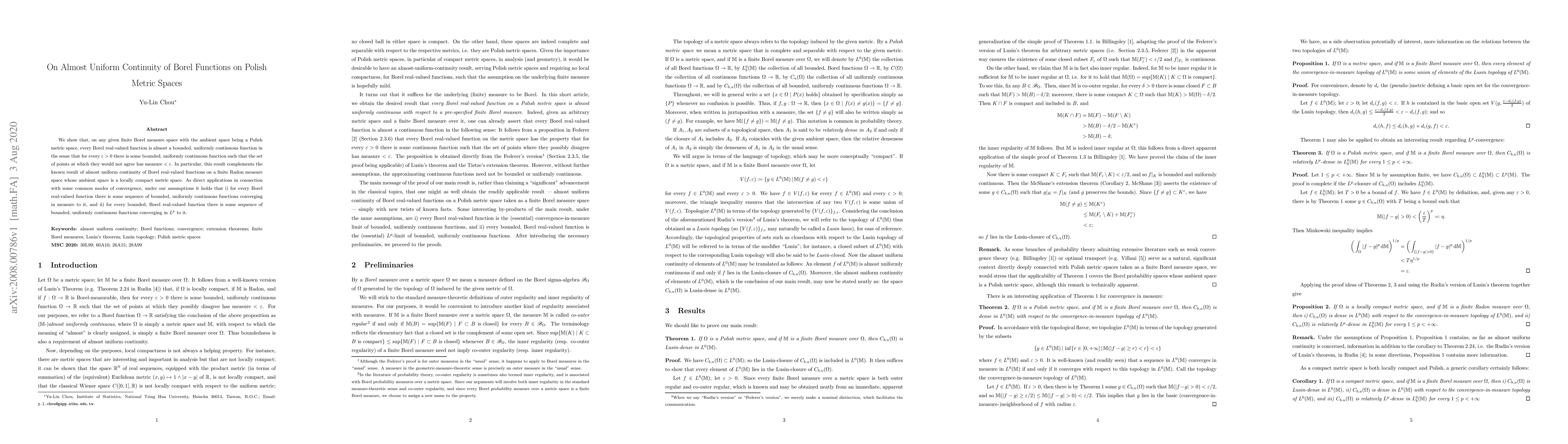 We show that, on any given finite Borel measure space with the ambient space being a Polish metric space, every Borel real-valued function is almost a bounded, uniformly continuous function in the sense that for every $\varepsilon > 0$ there is some bounded, uniformly continuous function such that the set of points at which they would not agree has measure $< \varepsilon$. In particular, this result complements the known result of almost uniform continuity of Borel real-valued functions on a finite Radon measure space whose ambient space is a locally compact metric space. As direct applications in connection with some common modes of convergence, under our assumptions it holds that i) for every Borel real-valued function there is some sequence of bounded, uniformly continuous functions converging in measure to it, and ii) for every bounded, Borel real-valued function there is some sequence of bounded, uniformly continuous functions converging in $L^{p}$ to it.