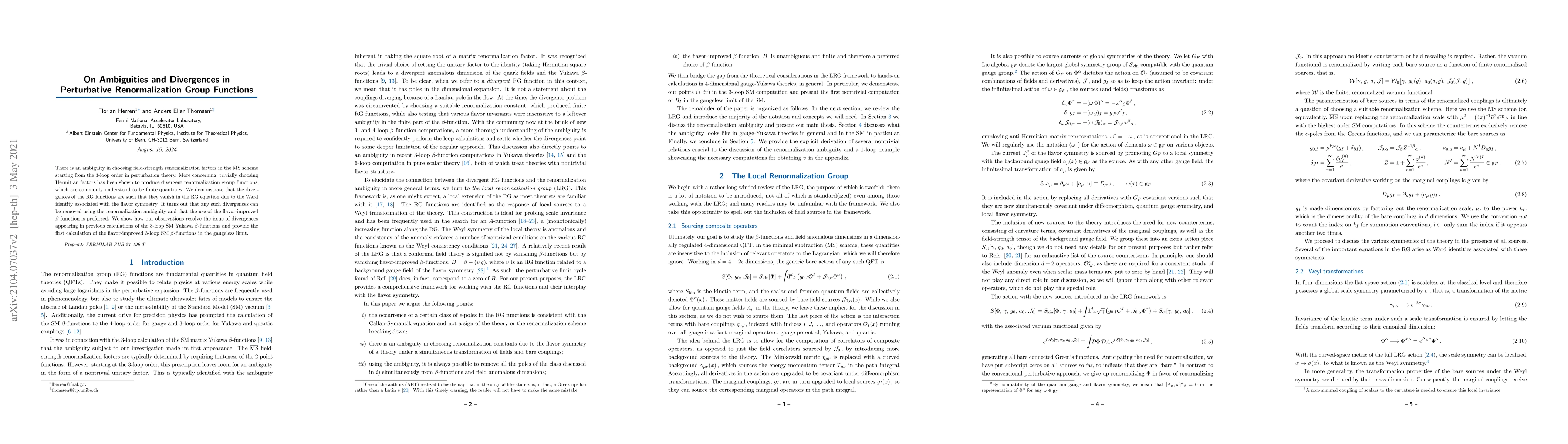 This paper identifies ambiguities in the $ \overline{\text{MS}} $ scheme's field-strength renormalization factors starting from the 3-loop order, showing that Hermitian factors can lead to divergent renormalization group functions. It resolves these divergences using the renormalization ambiguity and advocates for the flavor-improved $ \beta $-function, providing the first calculation of 3-loop SM $ \beta $-functions in the gaugeless limit.