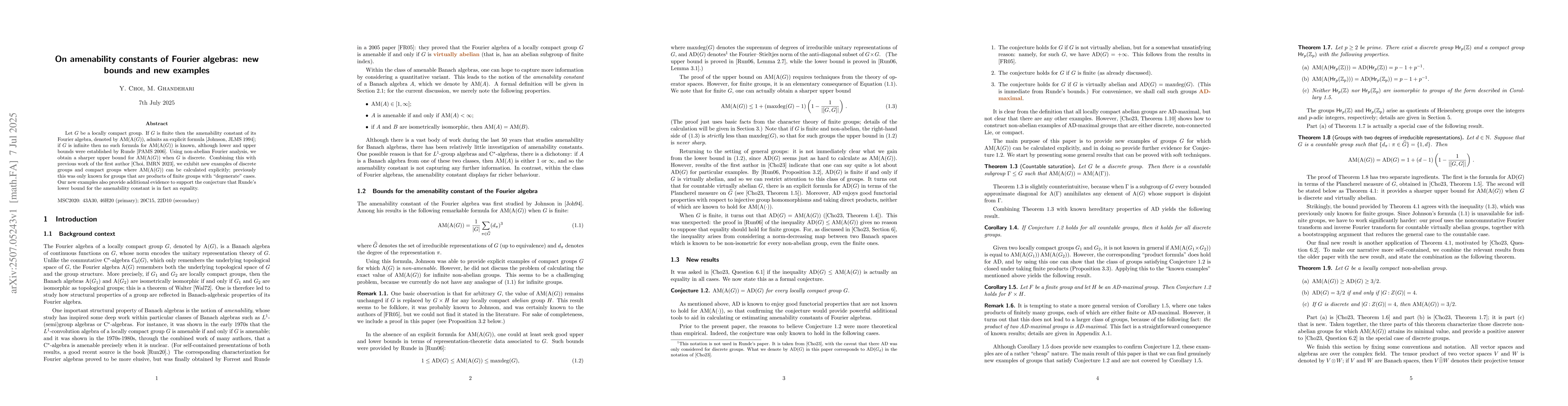 Let $G$ be a locally compact group. If $G$ is finite then the amenability constant of its Fourier algebra, denoted by ${\rm AM}({\rm A}(G))$, admits an explicit formula [Johnson, JLMS 1994]; if $G$ is infinite then no such formula for ${\rm AM}({\rm A}(G))$ is known, although lower and upper bounds were established by Runde [PAMS 2006]. Using non-abelian Fourier analysis, we obtain a sharper upper bound for ${\rm AM}({\rm A}(G))$ when $G$ is discrete. Combining this with previous work of the first author [Choi, IMRN 2023], we exhibit new examples of discrete groups and compact groups where ${\rm AM}({\rm A}(G))$ can be calculated explicitly; previously this was only known for groups that are products of finite groups with ``degenerate'' cases. Our new examples also provide additional evidence to support the conjecture that Runde's lower bound for the amenability constant is in fact an equality.