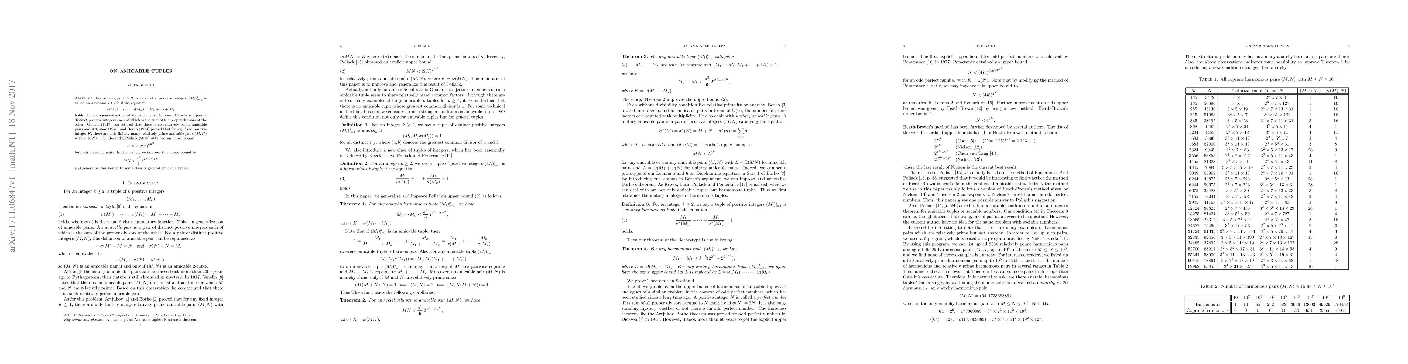 This paper generalizes the concept of amicable pairs to amicable $k$-tuples, where a tuple satisfies a specific sum-of-divisors equation. It improves upon previous bounds for the size of relatively prime amicable pairs and extends this refined upper bound to a broader class of amicable tuples.