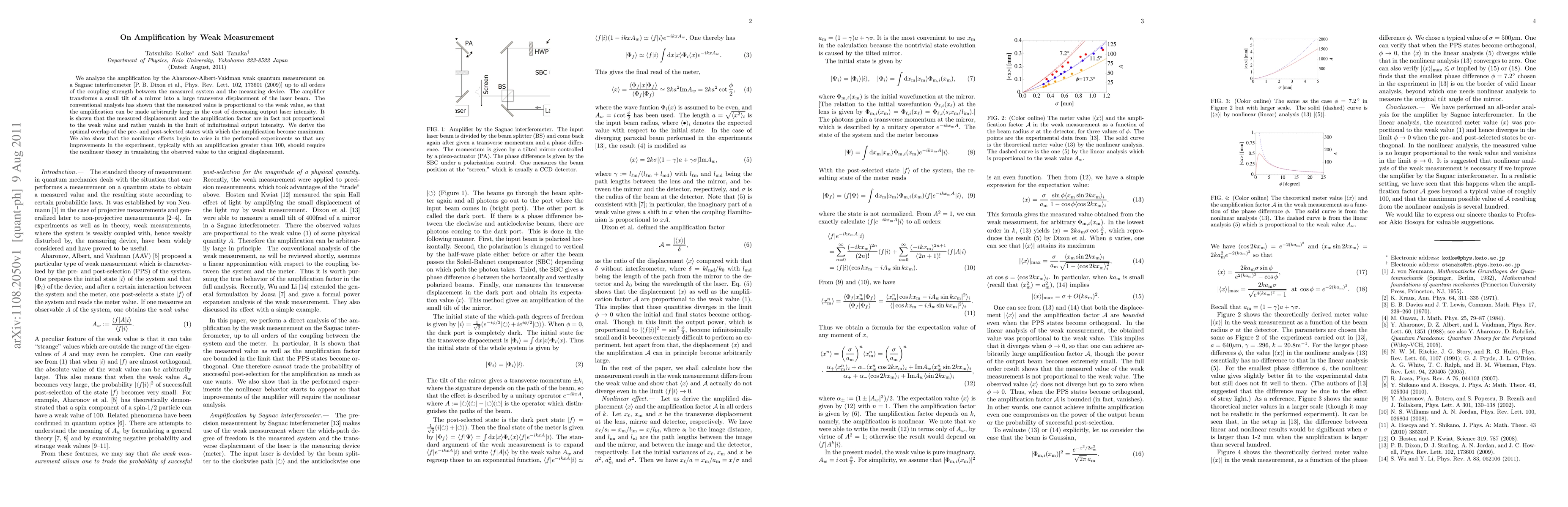 The research performs an all-order analysis of the amplifier by a Sagnac interferometer, examining the amplification factor and measured value up to all orders of the coupling strength between the measured system and the measuring device.