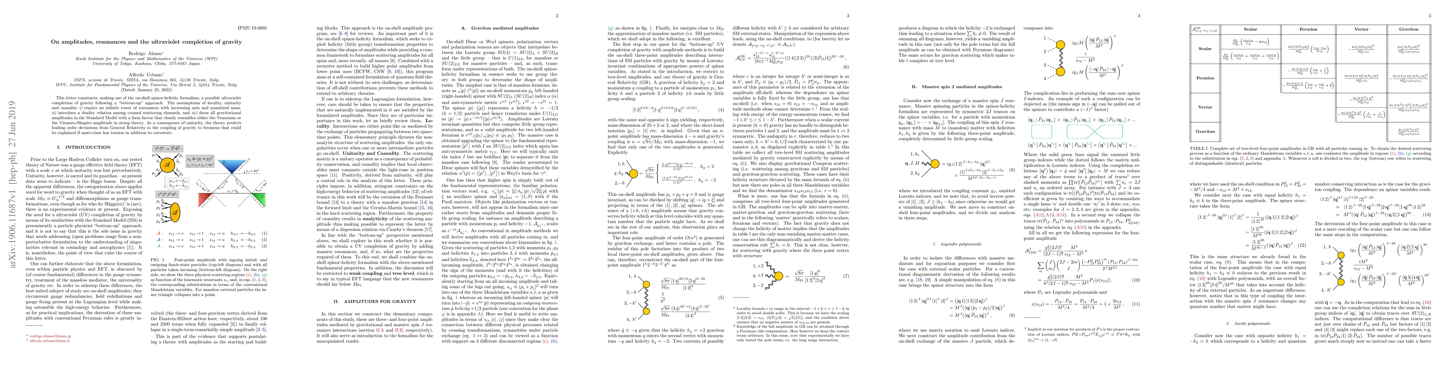 This letter constructs, making use of the on-shell spinor-helicity formalism, a possible ultraviolet completion of gravity following a "bottom-up" approach. The assumptions of locality, unitarity and causality i) require an infinite tower of resonances with increasing spin and quantized mass, ii) introduce a duality relation among crossed scattering channels, and iii) dress all gravitational amplitudes in the Standard Model with a form factor that closely resembles either the Veneziano or the Virasoro-Shapiro amplitude in string theory. As a consequence of unitarity, the theory predicts leading order deviations from General Relativity in the coupling of gravity to fermions that could be explained if space-time has torsion in addition to curvature.