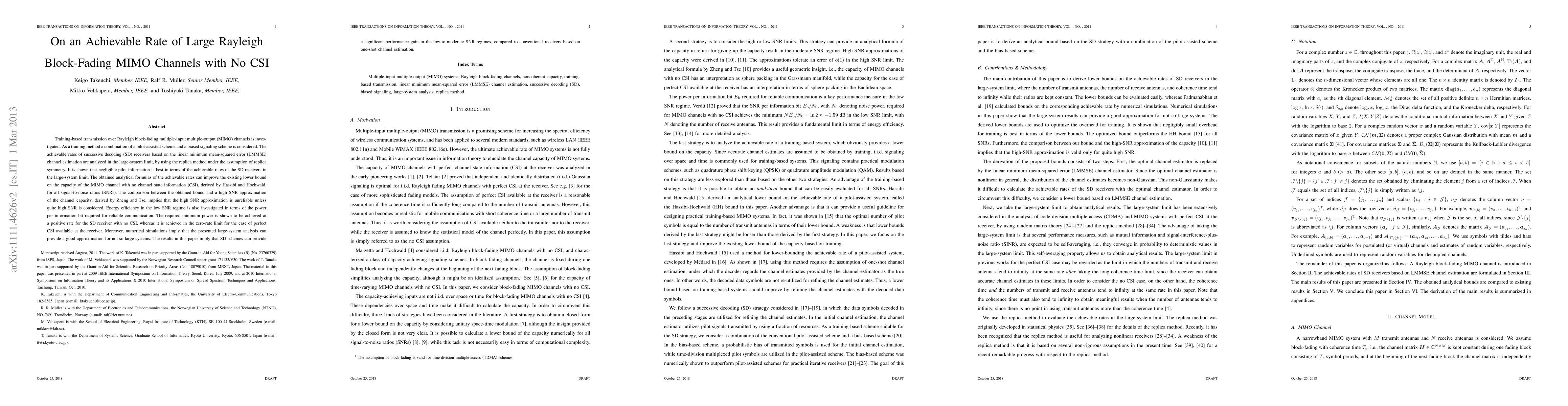 This paper investigates training-based transmission over Rayleigh block-fading MIMO channels without channel state information, showing that negligible pilot information achieves the best achievable rates in large systems. The analysis improves existing lower bounds on MIMO channel capacity and highlights significant performance gains for successive decoding receivers in low-to-moderate SNR regimes.