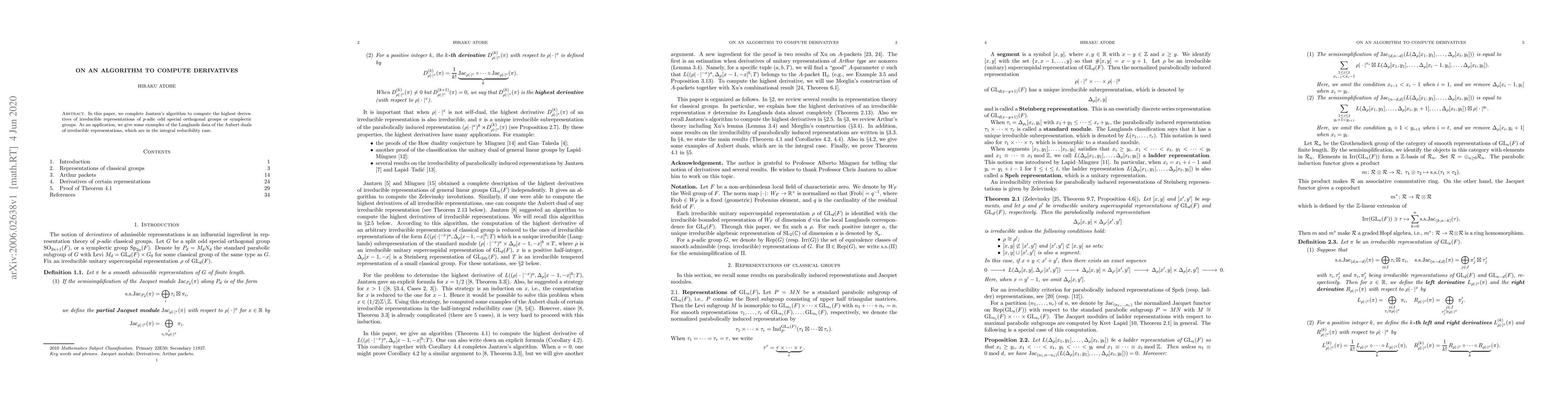 A new algorithm is developed to compute derivatives of irreducible representations of p-adic odd special orthogonal groups or symplectic groups, with applications in Langlands data analysis.