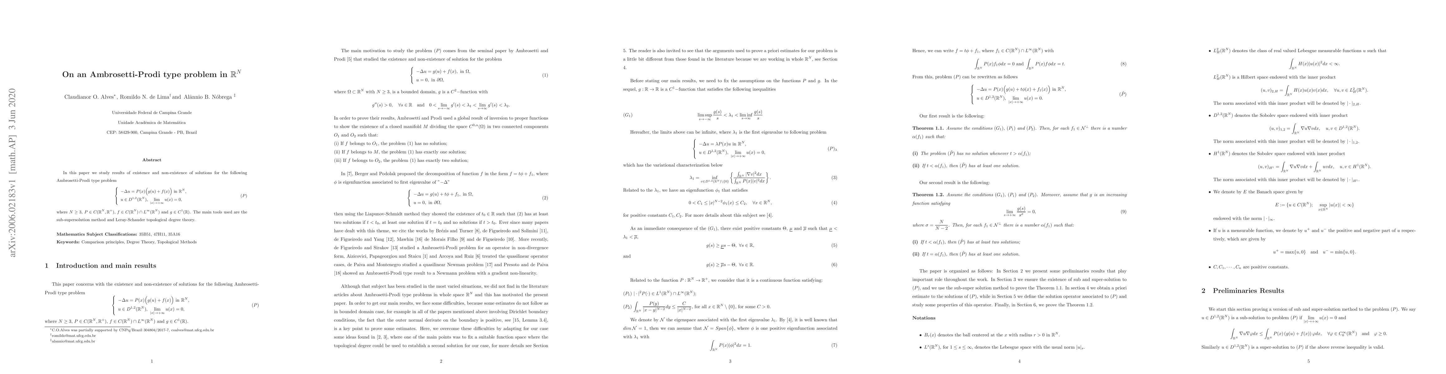This paper studies the existence and non-existence of solutions for an Ambrosetti-Prodi type problem in $oxed{N}$ dimensions, using sub-supersolution methods and topological degree theory.