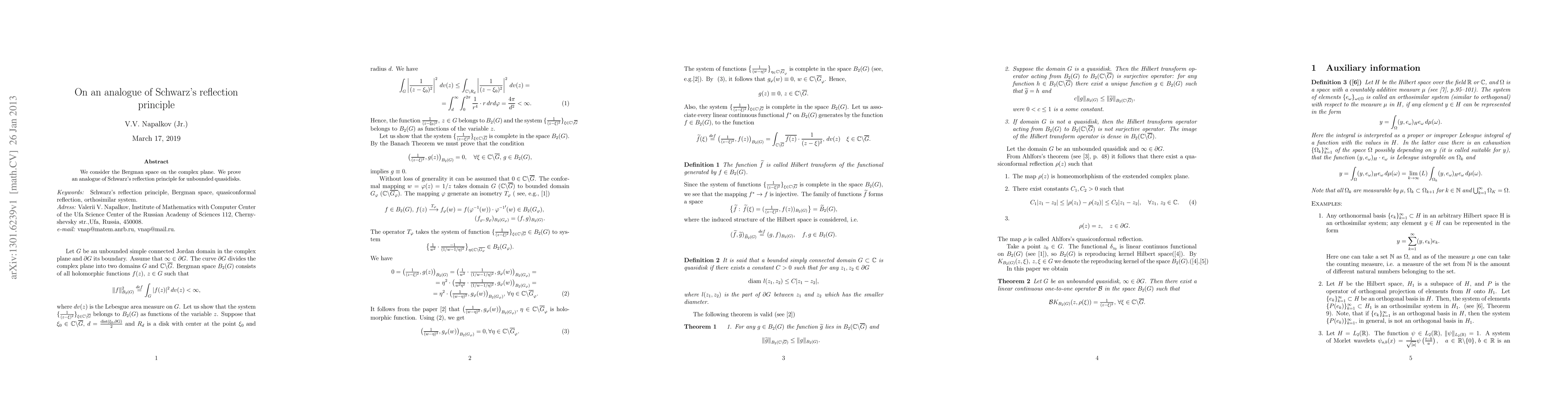 We consider the Bergman space on the complex plane. We prove an analogue of Schwarz's reflection principle for unbounded quasidisks.