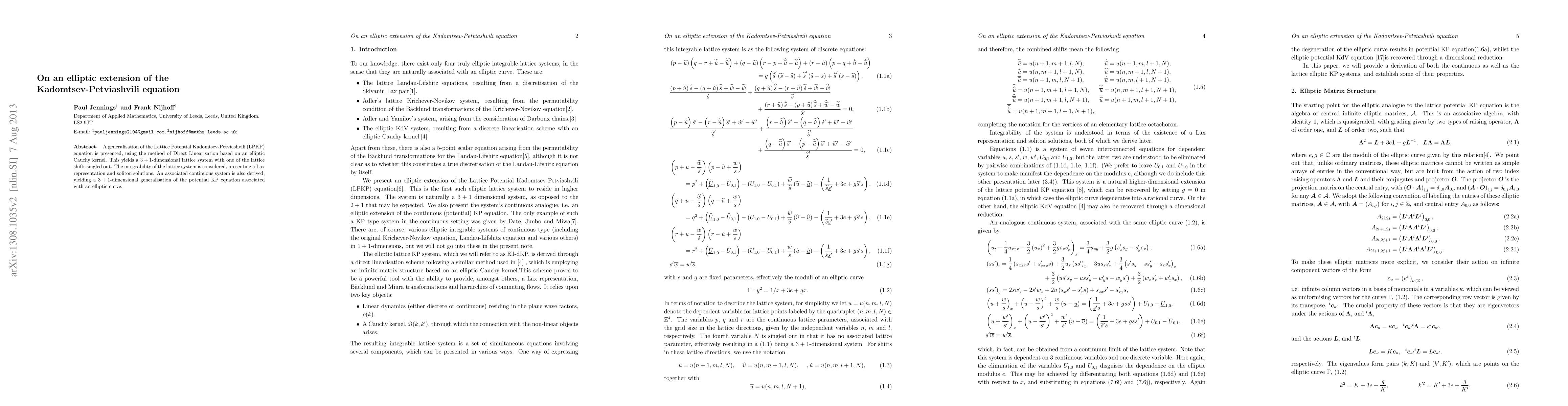 A generalisation of the Lattice Potential Kadomtsev-Petviashvili (LPKP) equation is presented, using the method of Direct Linearisation based on an elliptic Cauchy kernel. This yields a (3+1)-dimensional lattice system with one of the lattice shifts singled out. The integrability of the lattice system is considered, presenting a Lax representation and soliton solutions. An associated continuous system is also derived, yielding a (3+1)-dimensional generalisation of the potential KP equation associated with an elliptic curve.