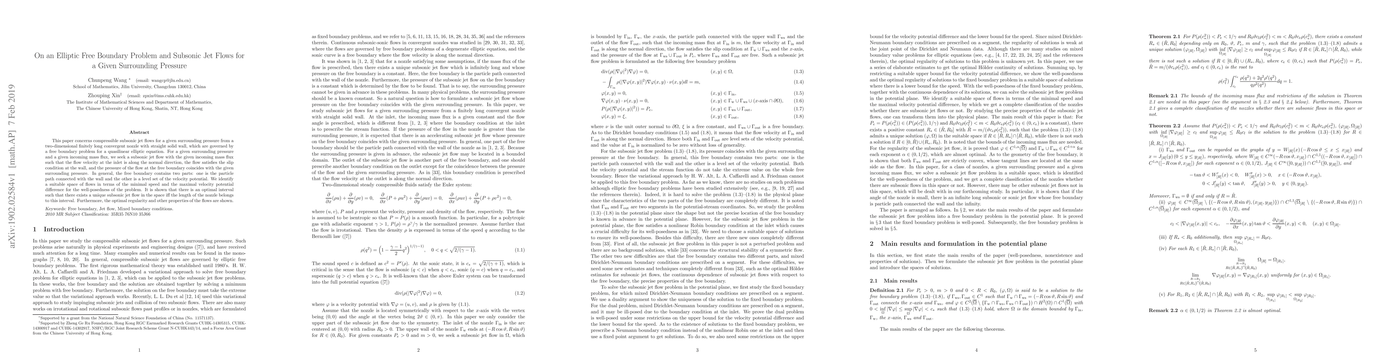 This paper studies compressible subsonic jet flows through a two-dimensional convergent nozzle, governed by a free boundary problem. It identifies conditions for the existence and uniqueness of such flows under given surrounding pressure and mass flux, showing optimal nozzle length intervals for well-posedness.