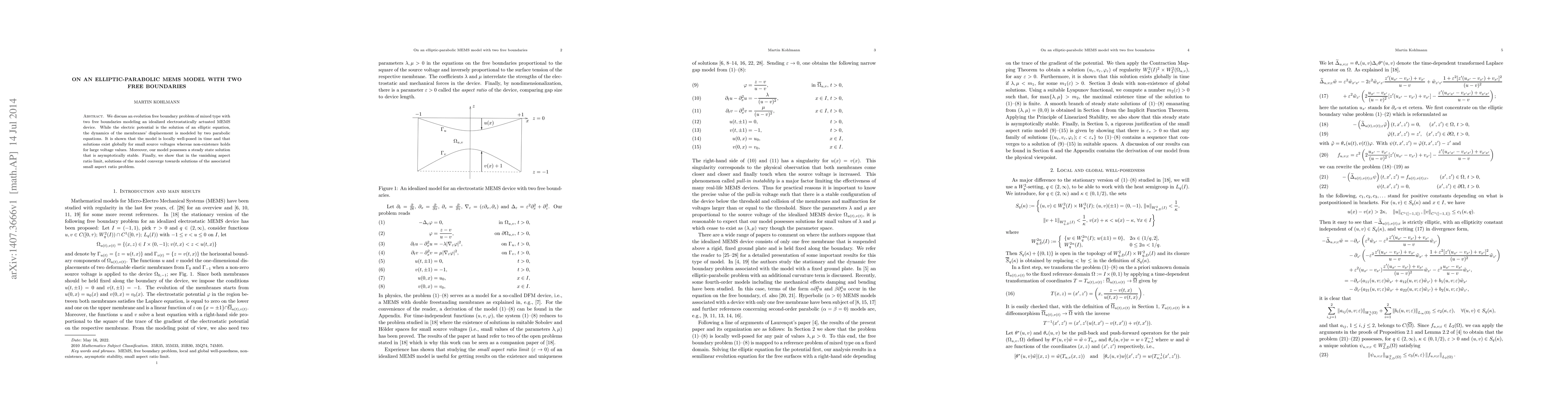 A new mathematical model describes the movement of membranes in MEMS devices, showing that solutions exist for small voltages but not large ones, with a stable steady state solution that converges to smaller aspect ratio problems.