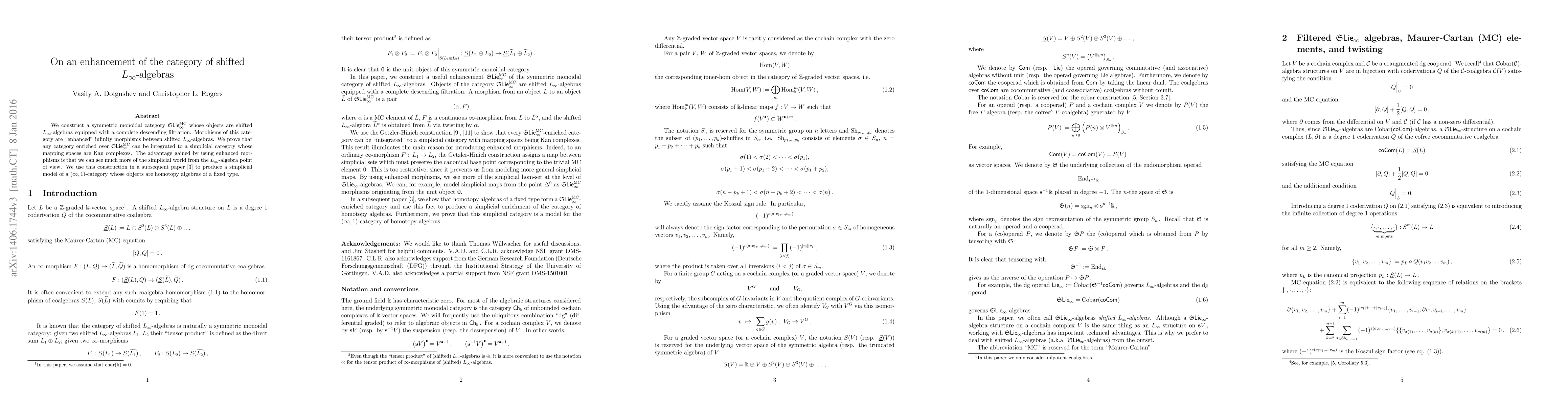 This paper constructs a symmetric monoidal category $LIE^{MC}$ of shifted L-infinity algebras with filtrations, utilizing "enhanced" morphisms, and proves its integration into a simplicial category. The enhanced morphisms allow a deeper exploration of the simplicial structure from the L-infinity algebra perspective.