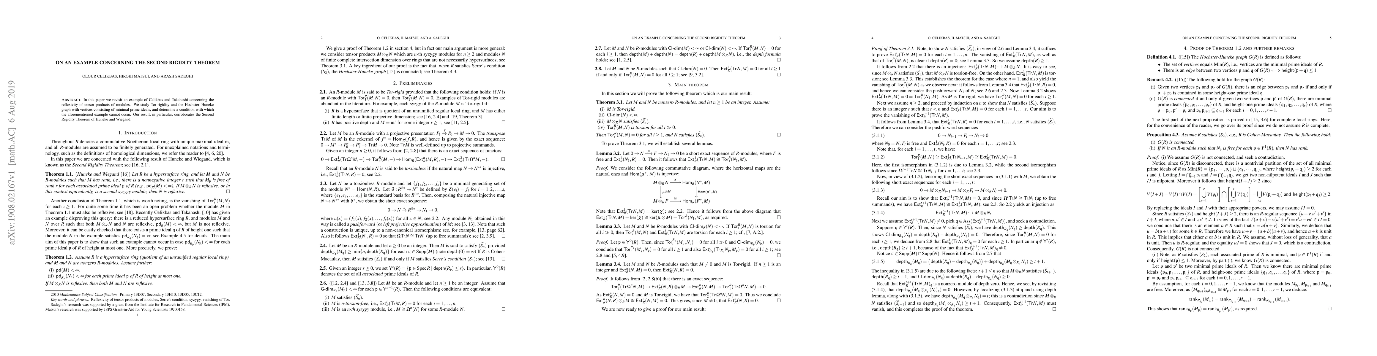 This paper examines an example by Celikbas and Takahashi regarding the reflexivity of tensor products of modules, analyzing Tor-rigidity and the Hochster-Huneke graph. The study establishes a condition under which the example cannot occur, thereby supporting the Second Rigidity Theorem of Huneke and Wiegand.