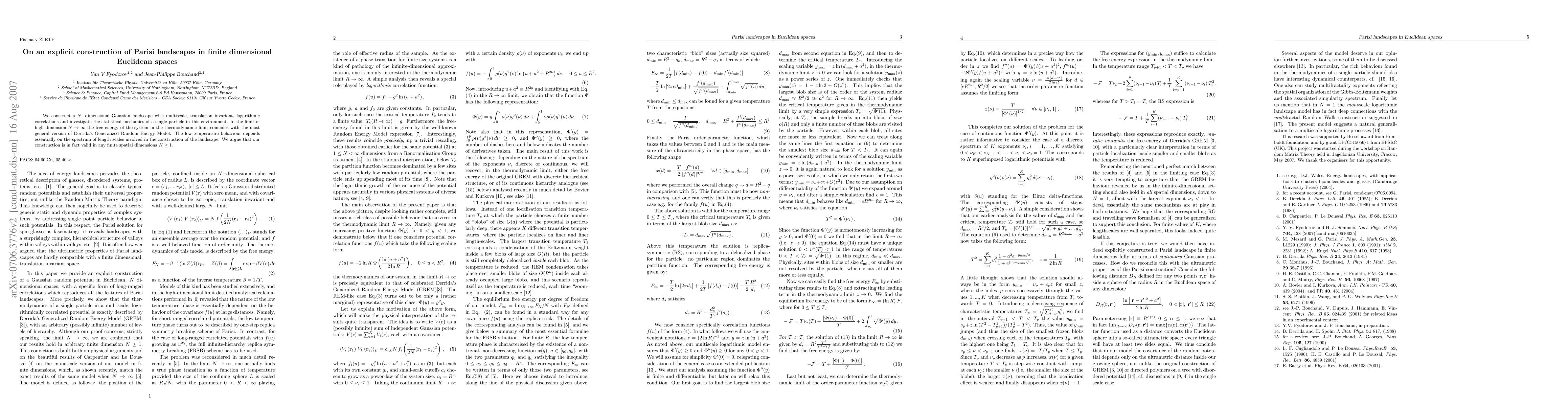 This paper constructs a multiscale, translation-invariant Gaussian landscape in finite-dimensional Euclidean spaces, examining its statistical mechanics. In high dimensions, the system's free energy aligns with Derrida's Generalized Random Energy Model, with low-temperature behavior influenced by the spectrum of length scales.