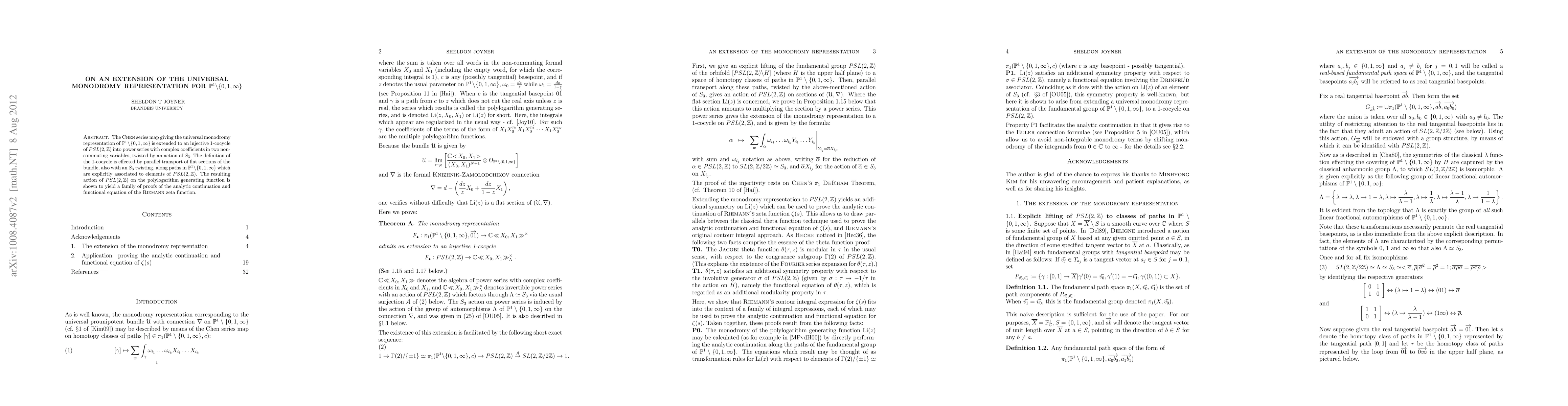 Researchers extend the universal monodromy representation of $rac{1}{ heta}$ to an injective 1-cocycle, yielding a family of proofs for the analytic continuation and functional equation of the Riemann zeta function.