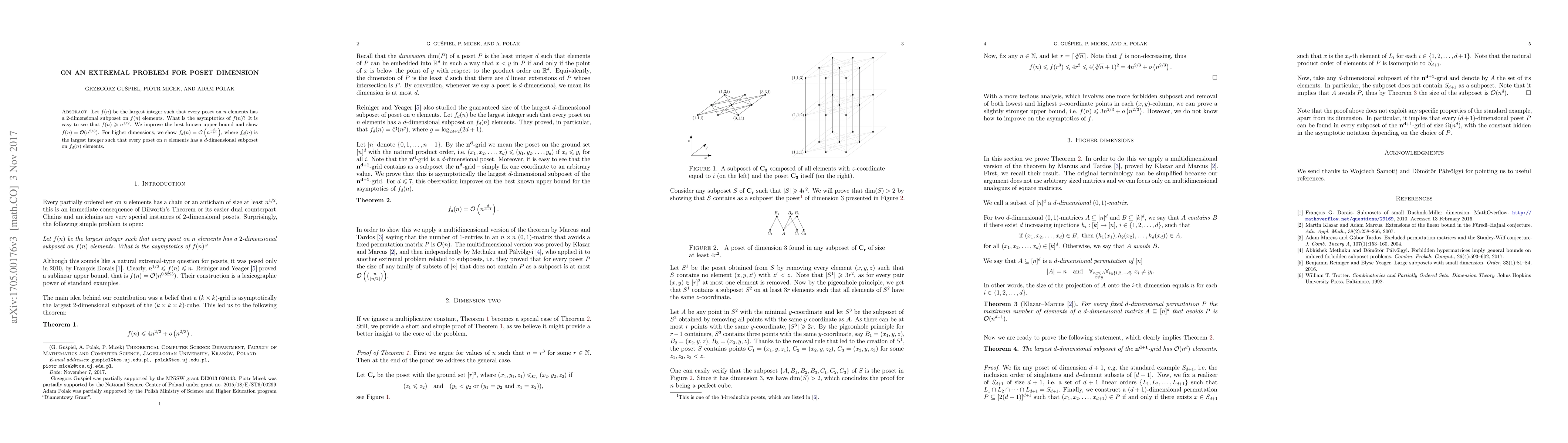 Let $f(n)$ be the largest integer such that every poset on $n$ elements has a $2$-dimensional subposet on $f(n)$ elements. What is the asymptotics of $f(n)$? It is easy to see that $f(n)\geqslant n^{1/2}$. We improve the best known upper bound and show $f(n)=\mathcal{O}(n^{2/3})$. For higher dimensions, we show $f_d(n)=\mathcal{O}\left(n^\frac{d}{d+1}\right)$, where $f_d(n)$ is the largest integer such that every poset on $n$ elements has a $d$-dimensional subposet on $f_d(n)$ elements.