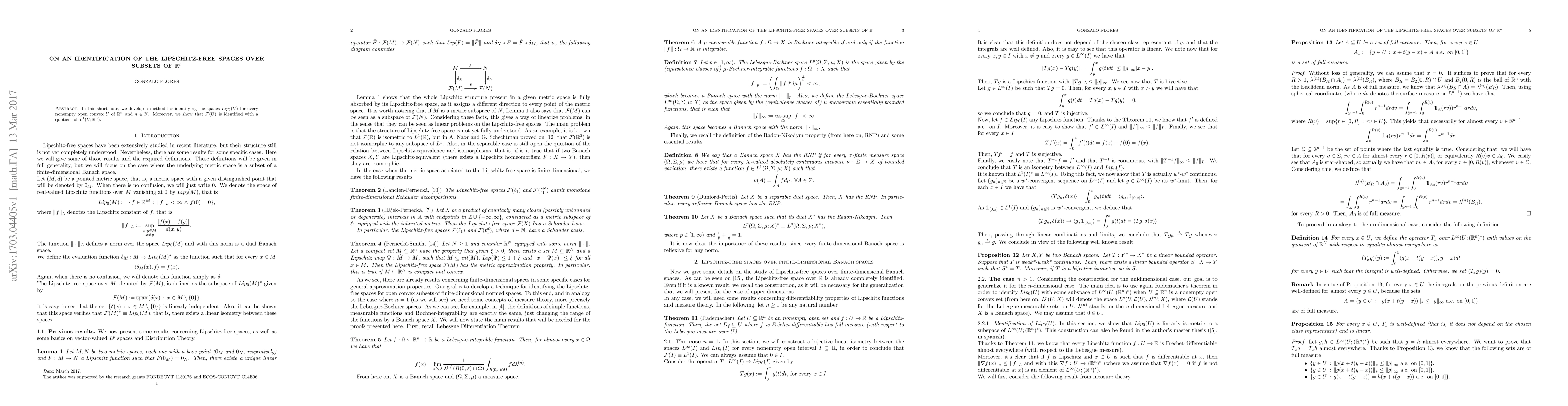 In this short note, we develop a method for identifying the spaces $Lip_{0}(U)$ for every nonempty open convex $U$ of $\mathbb{R}^{n}$ and $n\in\mathbb{N}$. Moreover, we show that $\mathcal{F}(U)$ is identified with a quotient of $L^{1}(U;\mathbb{R}^{n})$.